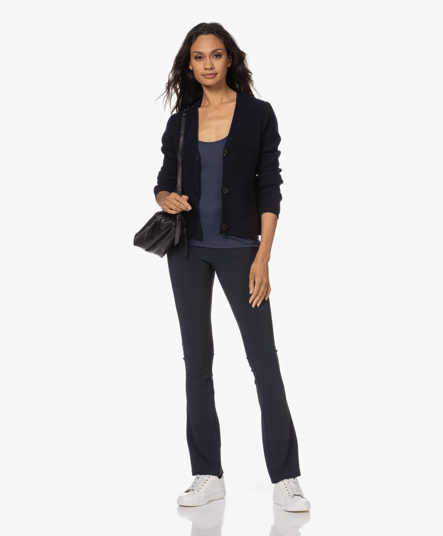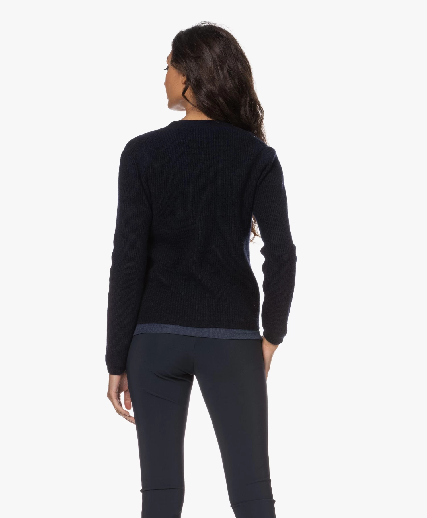 Pure luxe, stijlvolle eenvoud: Resort Finest‘ vest is ribgebreid van zuiver cashmere in donkerblauw. De licht aangesloten pasvorm met V-hals is veelzijdig: je draagt het even stijlvol over een blouse als sensueel op je blote huid.