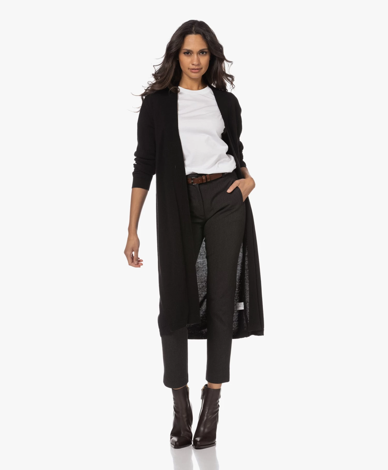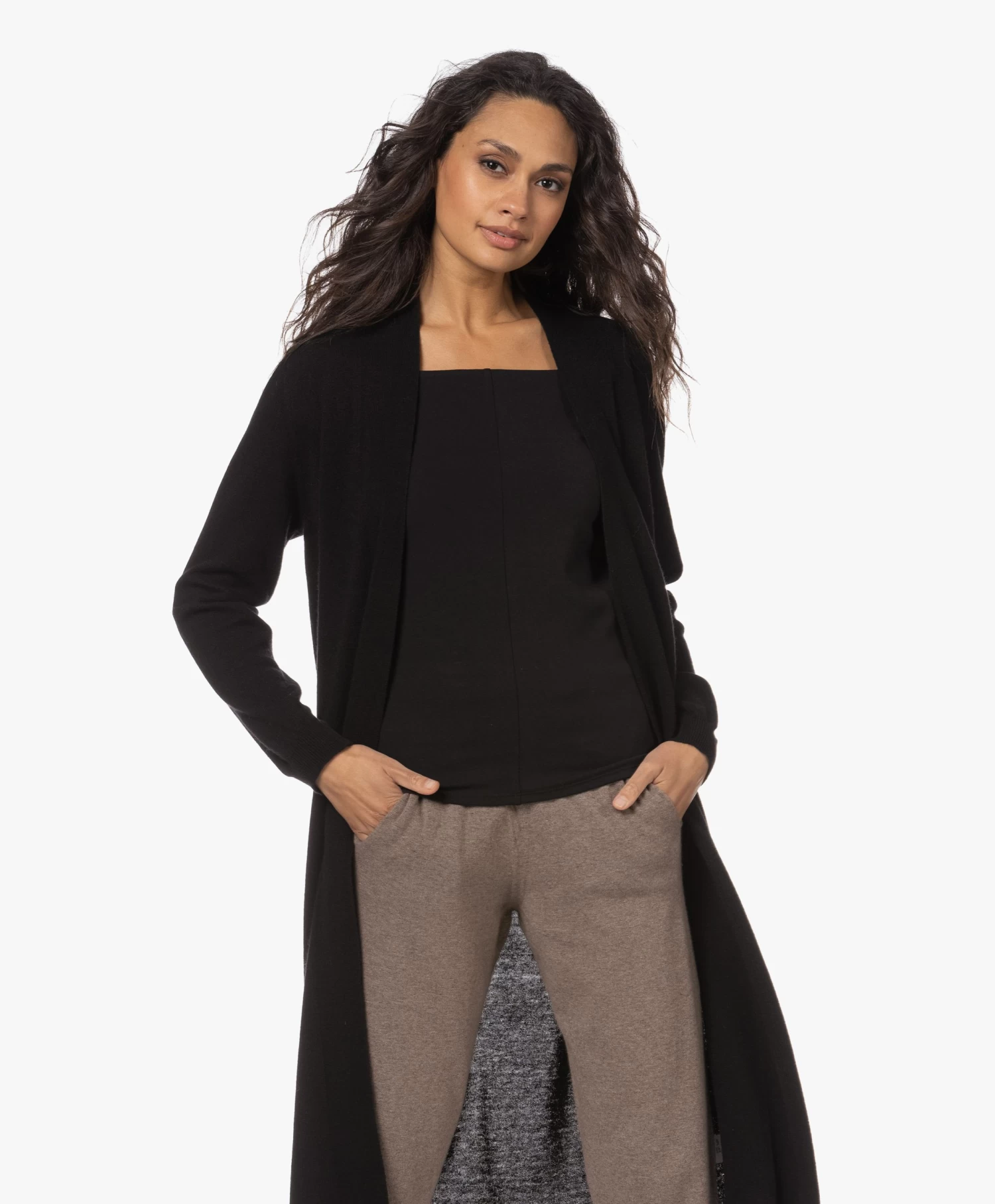 Resort Finest combineert moeiteloos tijdloos design en minimalisme om tot een legio must-have stijlen te komen. Zoals ook wordt bewezen met dit midi-lengte vest in een eigentijdse zwarte tint. Het open vest is gemaakt van een fijn breisel van wol, viscose en cashmere en is ontworpen met minimale details voor een veelzijdig karakter.