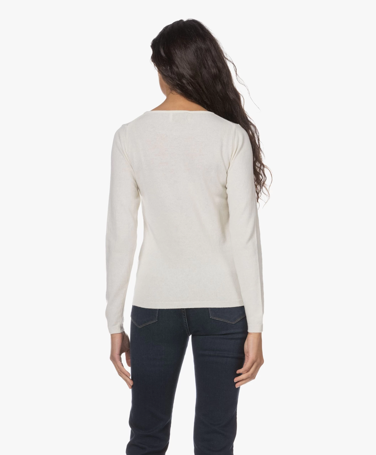 Deze tijdloze ronde hals pullover Forte in een chique off-white tint van Resort Finest is een ultieme klassieker. Ontworpen in een luxueuze, lichtgewicht en superzachte mix van cashmere, zijde en wol in een fijn breisel. Iedere vrouw heeft deze garderobe essential nodig!