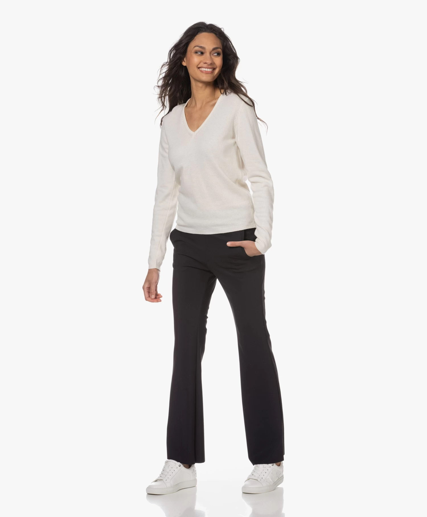 Off-white V-hals pullover Via van Resort Finest is een ultieme klassieker. Ontworpen in een luxueuze, lichtgewicht en superzachte mix van cashmere, zijde en wol in een fijn breisel. Iedere vrouw heeft deze garderobe essential nodig!