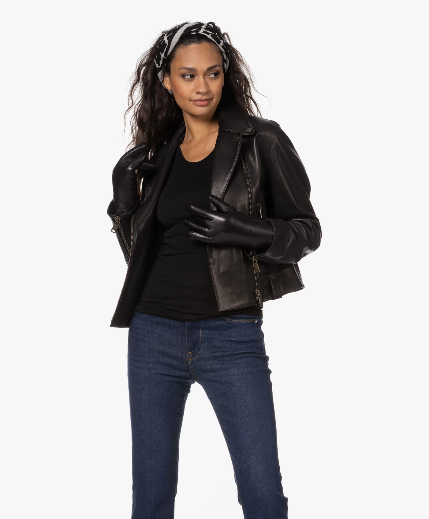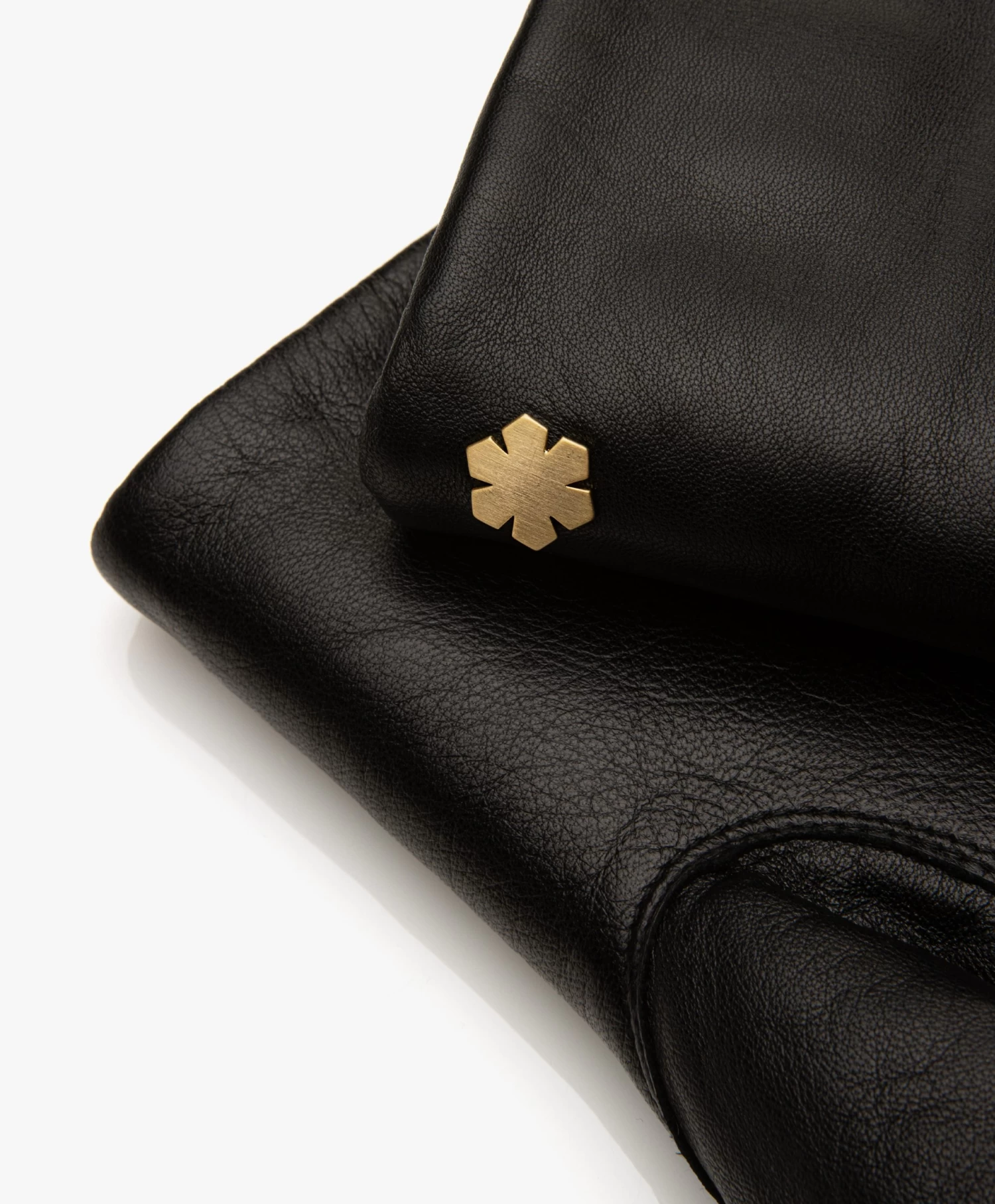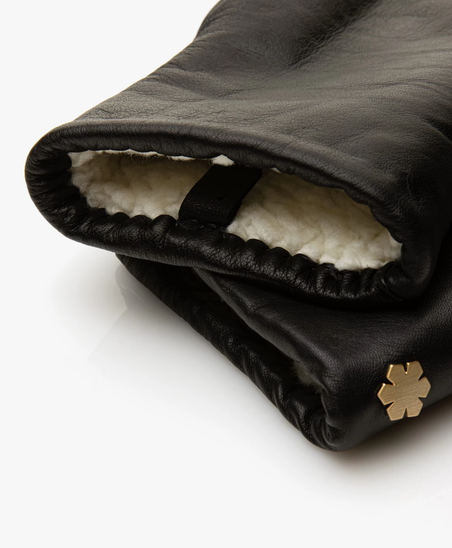 Zachter dan zacht, luxer dan luxe: deze Anna Pearl handschoenen van Rhanders zijn on another level. Met een erfgoed dat teruggaat naar 1250, en officieel opgericht in 1811, is het merk één van de langst bestaande handschoenenmakers ter wereld en nog steeds ontwerpen en vervaardigen zij de meest verfijnde handschoenen. Dit paar is vervaardigd van boterzacht, waterafstotend lamsleer dat aan de binnenkant is afgewerkt met ongekend zachte lamswol. Het Kalmus bloemdetail in 14-karaats goldplated goud is iconisch en kon natuurlijk niet ontbreken.Â