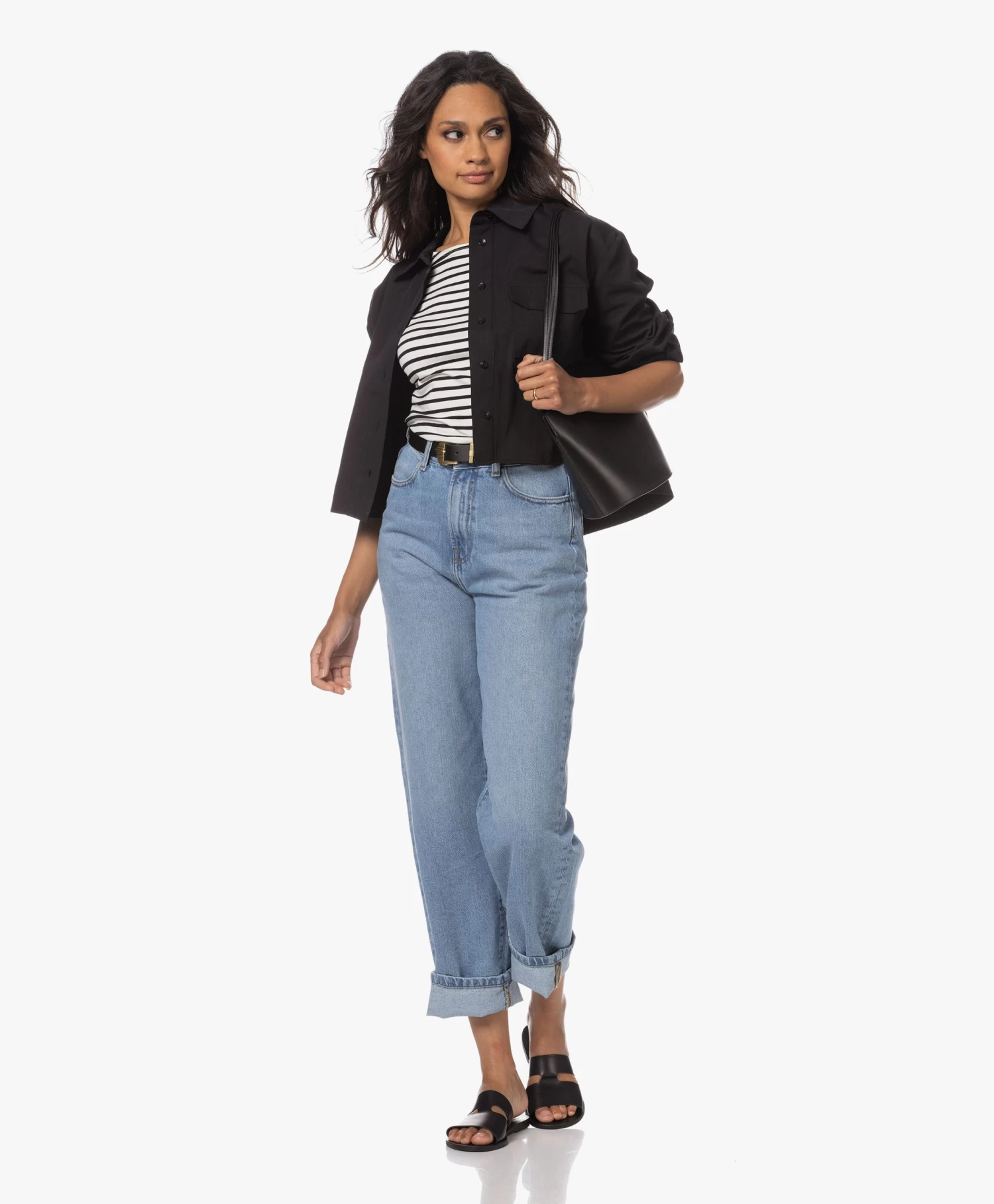 Hoge taille, relaxte pasvorm, rechte pijpen. Met Róhe’s lichtblauwe denim van deels gerecyclede katoen haal je een stijlvolle 5-pocket in huis. Of je er nu een nette blazer of comfortabele slobbertrui bij draagt: je outfit oogt altijd cool.