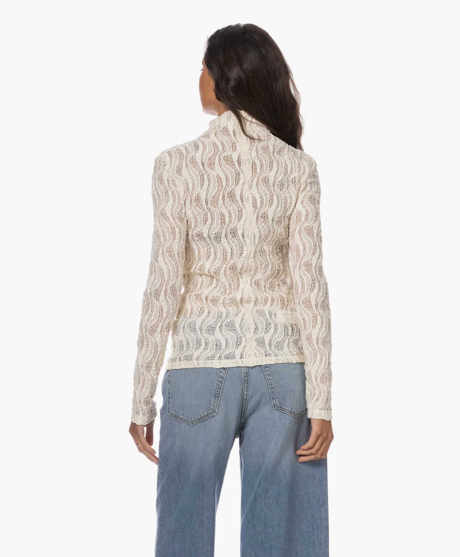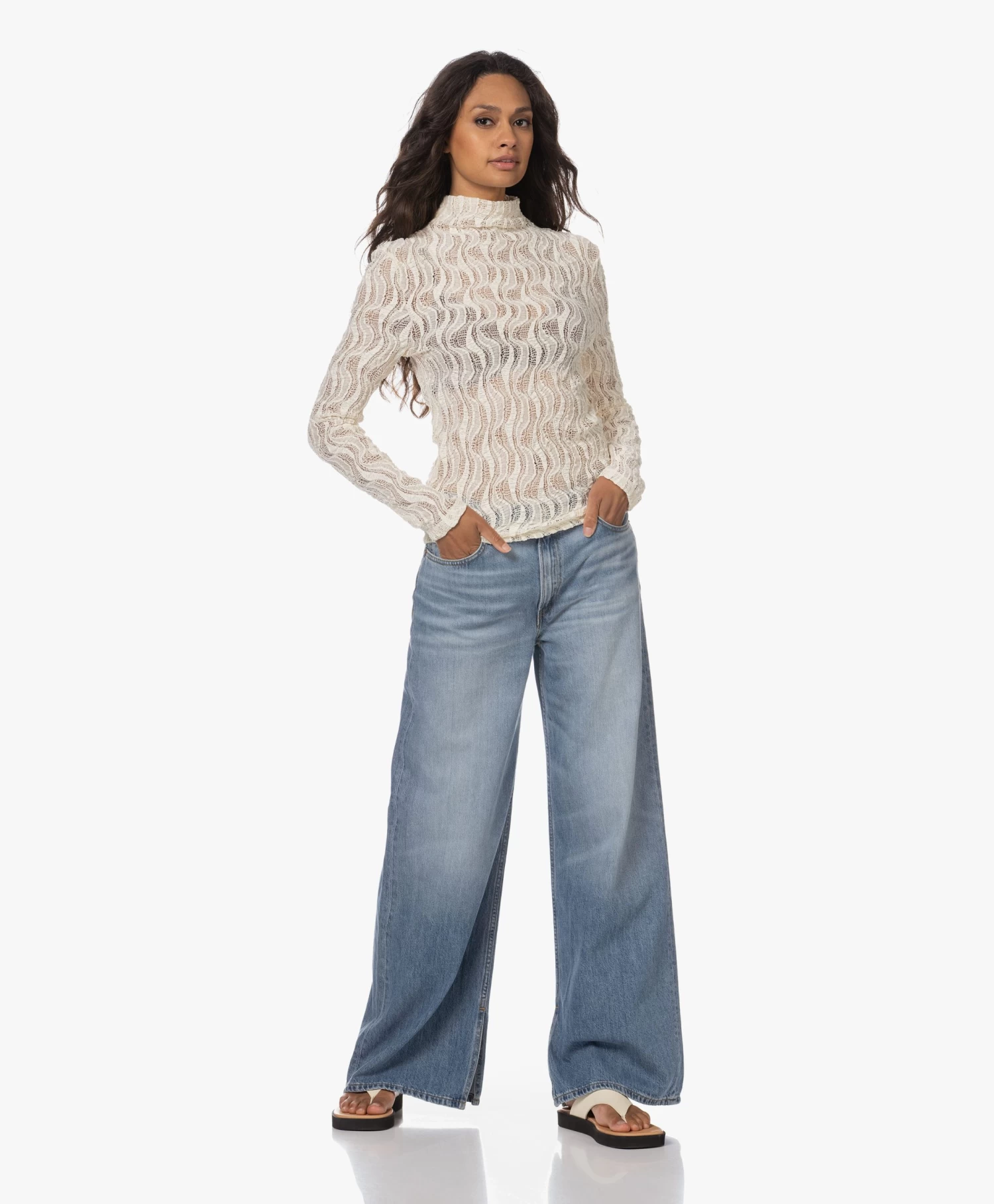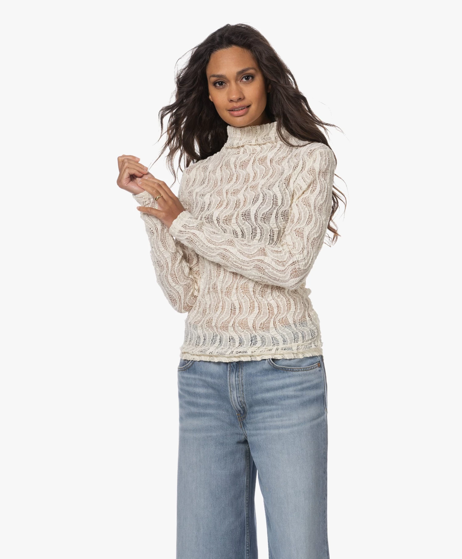 Het crèmekleurig stretch-kant van Róhe’s longsleeve oogt vrouwelijk en elegant – het aangesloten ontwerp met hoge col is een tikkeltje edgy. Een sterke combi waarmee je eindeloos kunt variëren én experimenten. Onder een chique blazer, op een casual 5-pocket… Gemaakt van matte, ‘vol’ aanvoelend katoenmix stretch-kant.