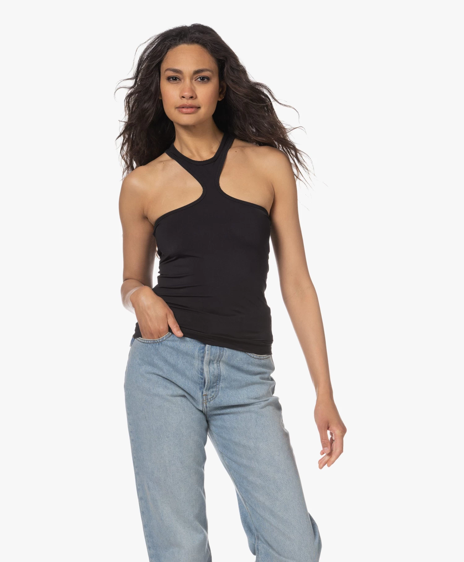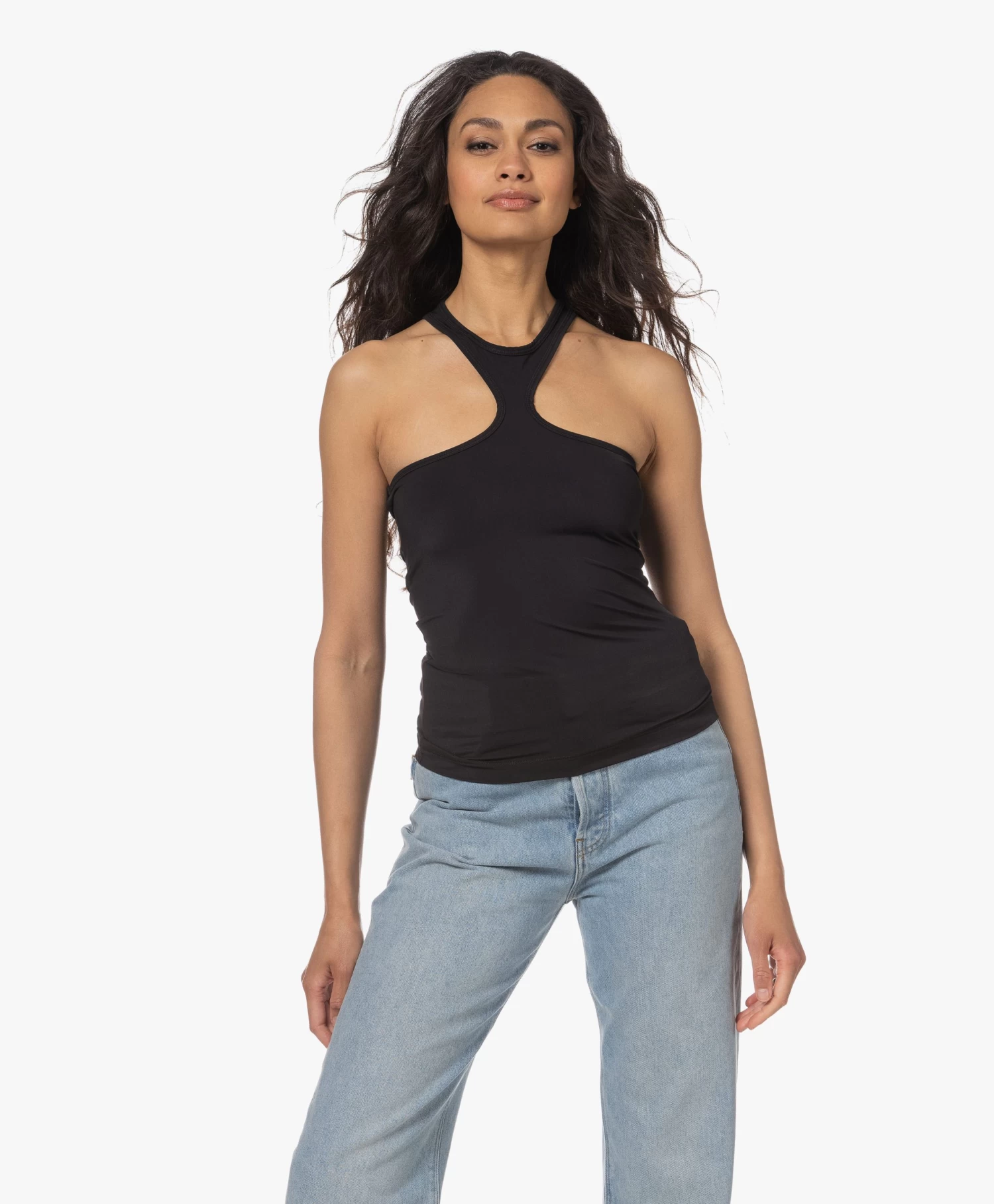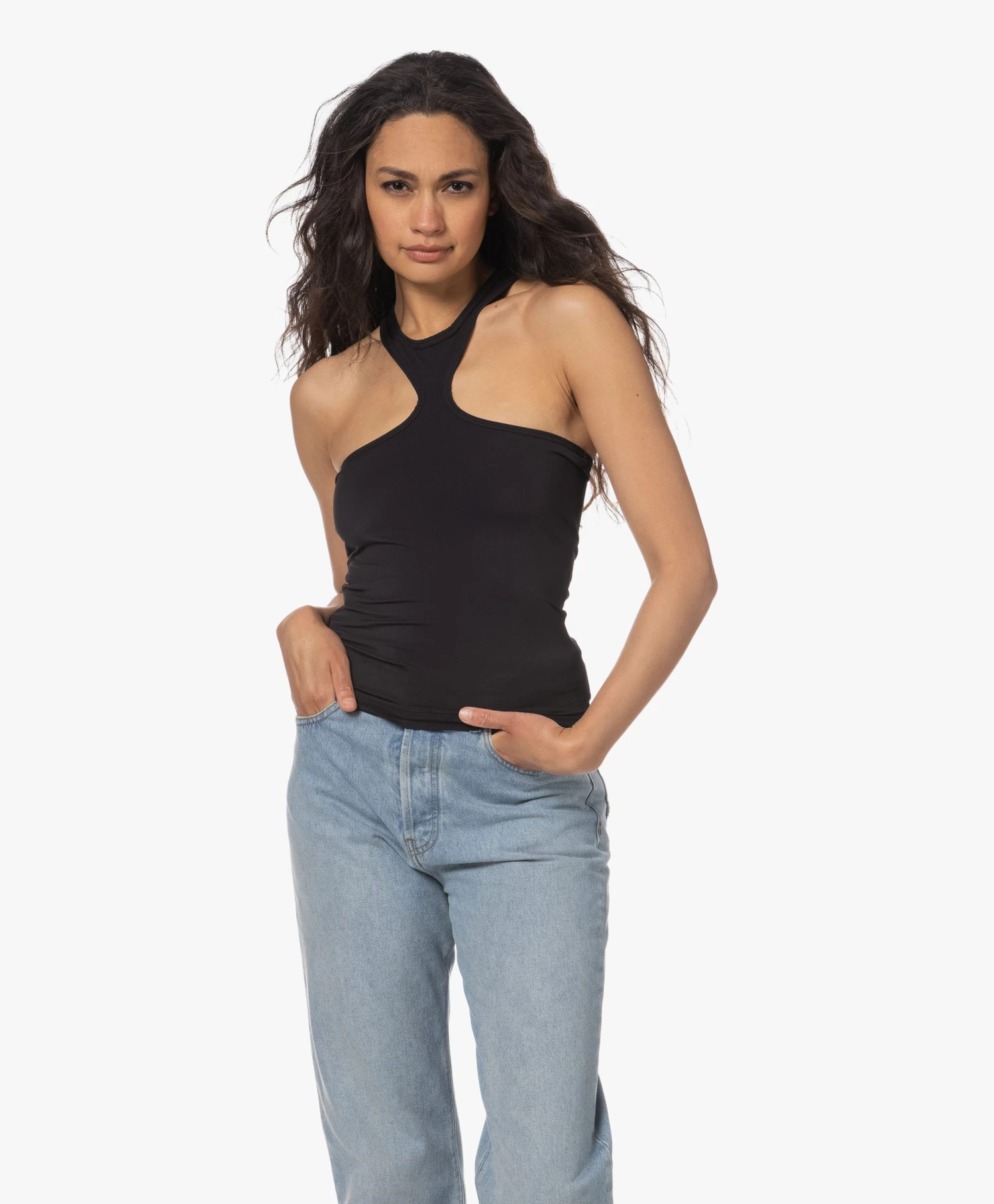 Edgy designs zijn Róhe’s handelsmerk. Met dank aan de bijzondere halterbelijning is deze zwarte top een ware eyecatcher, terwijl hij toch in de categorie essentials valt – houden wij van! Gemaakt van een stevige en cleane tech jersey met easy-care eigenschappen, lees: wassen, drogen en meteen weer aantrekken.