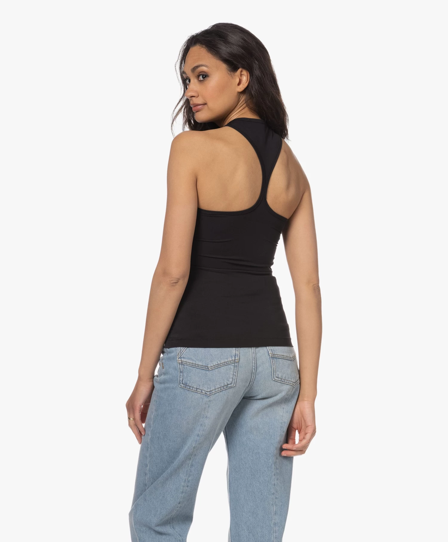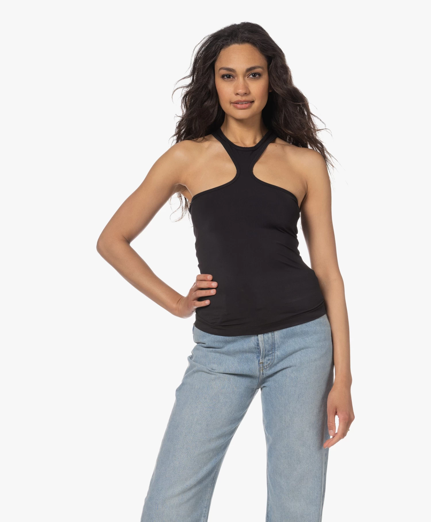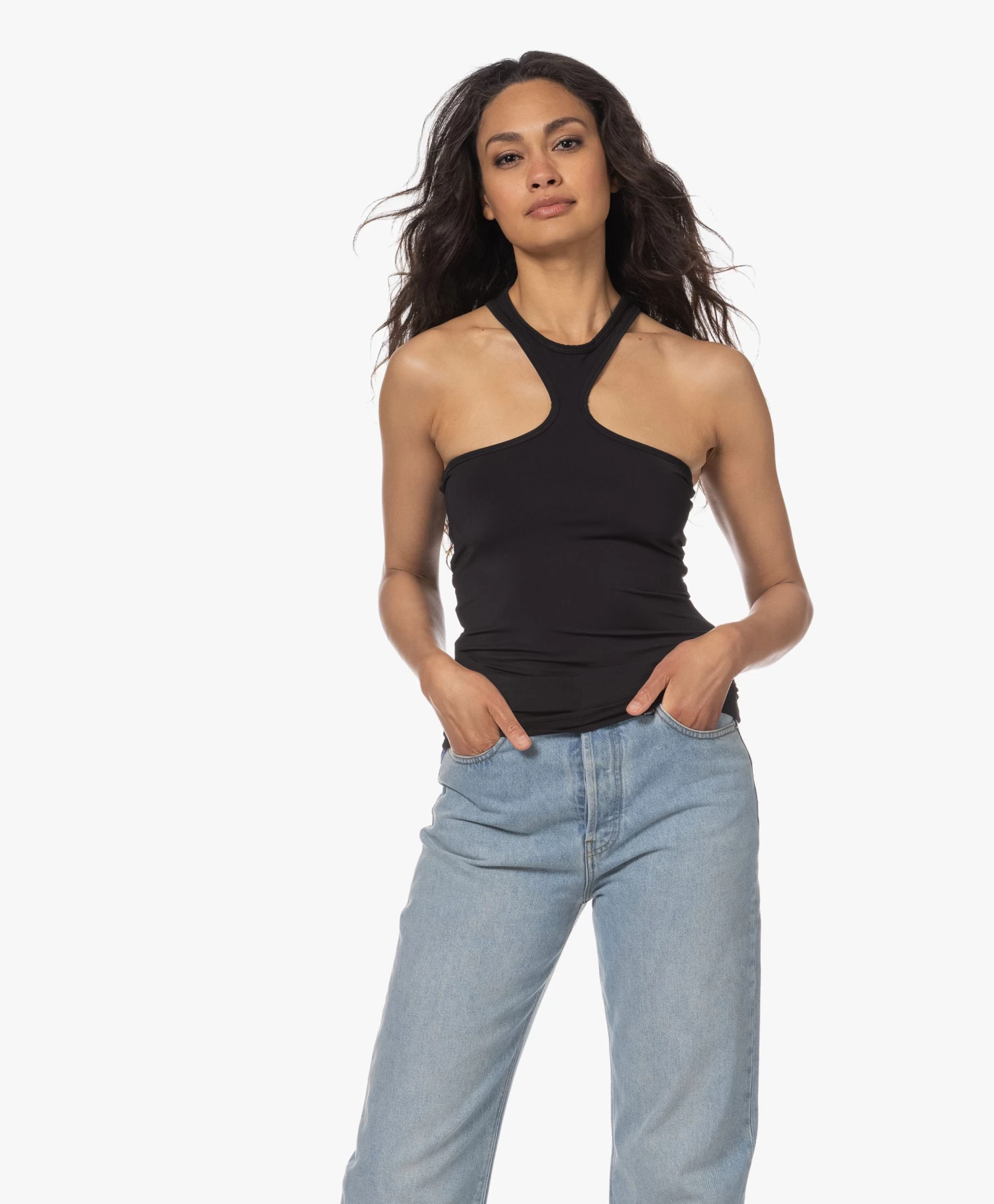 Edgy designs zijn Róhe’s handelsmerk. Met dank aan de bijzondere halterbelijning is deze zwarte top een ware eyecatcher, terwijl hij toch in de categorie essentials valt – houden wij van! Gemaakt van een stevige en cleane tech jersey met easy-care eigenschappen, lees: wassen, drogen en meteen weer aantrekken.