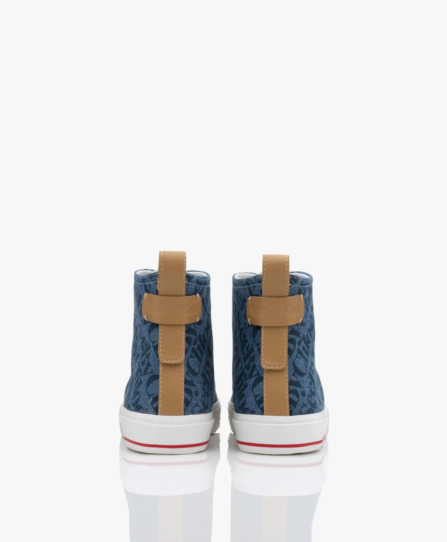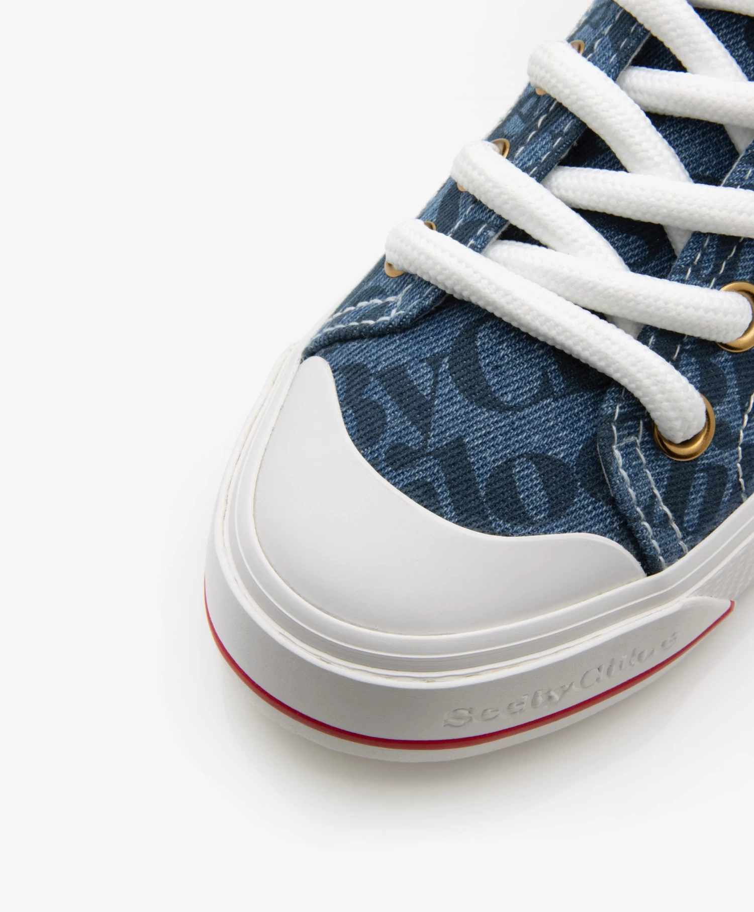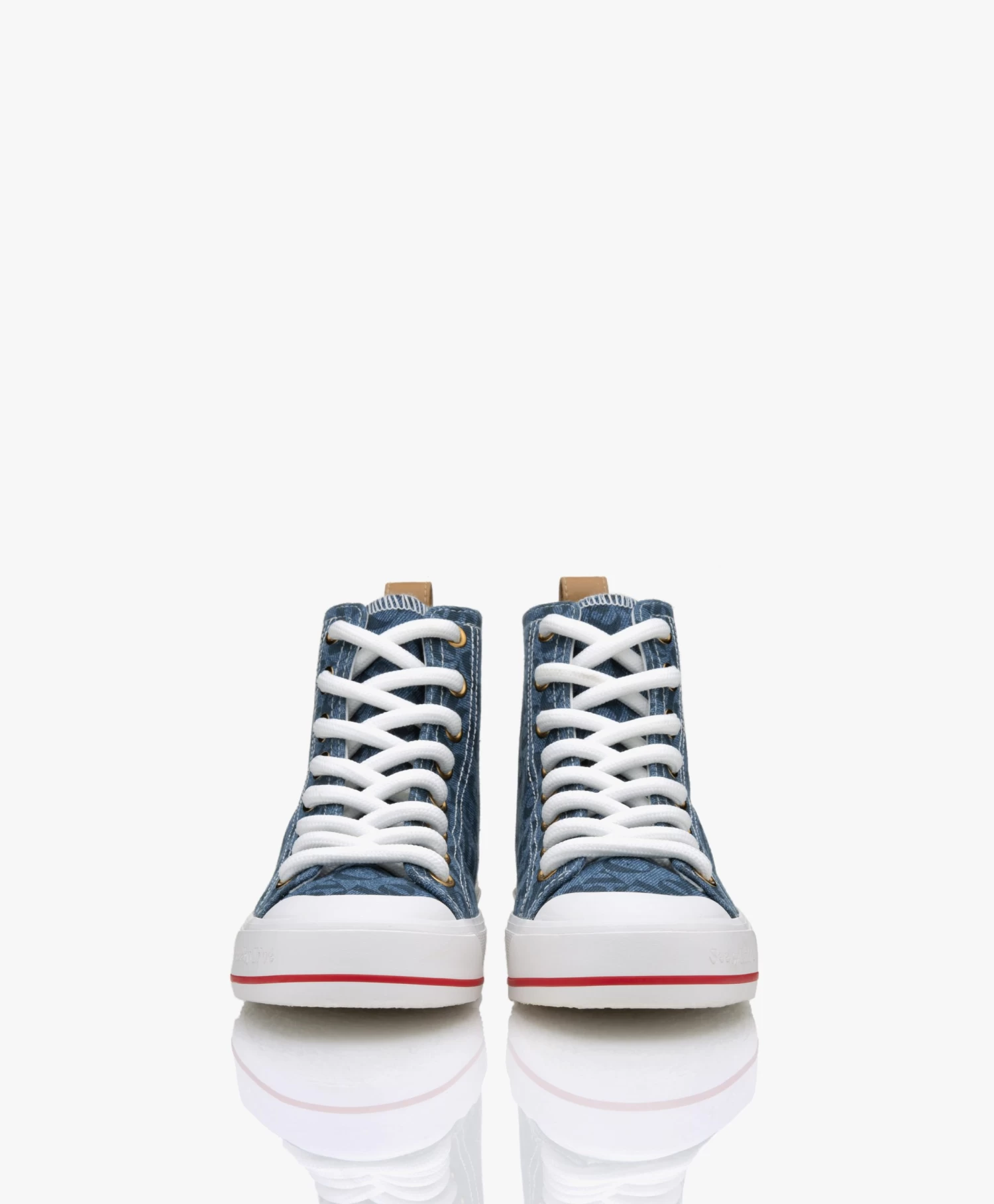 Deze Aryana old-school high-tops in blue denim van See By Chloé zijn all-over bedrukt met de merknaam en geven je casual look een high-end finish. De Aryana sneakers zijn ontworpen met oog voor detail: de hiellus is van naturel leer met embossed logo en de witte veters zijn rond en chunky. Goudkleurige veterogen geven deze sportieve sneakers een luxe vrouwelijke touch.