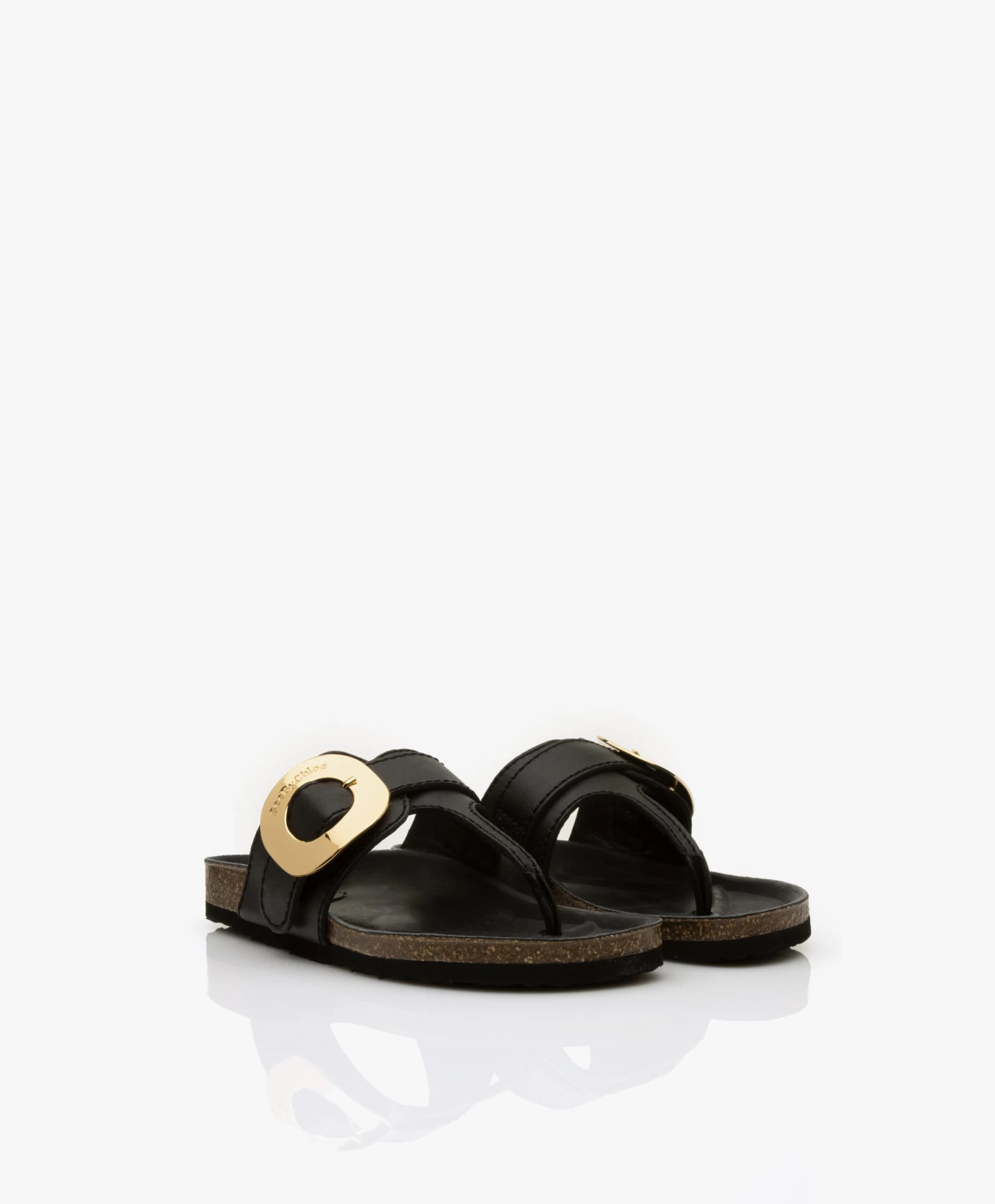 Een slipper die opvalt maar wél iedere dag draagbaar is: zie jij jezelf al rondlopen op de zwartleren Chany teenslippers van See by Chloé? Wij garanderen: als je voelt hoe comfortabel dit paar is, ben je sowieso om. Met een anatomisch voetbed van geperst kurk, afgewerkt met een laagje leer, ben jij verzekerd van comfort. En met de grote, goudkleurige gesp met gelaserde merknaam kan iedereen zien dat je SBC fan bent.