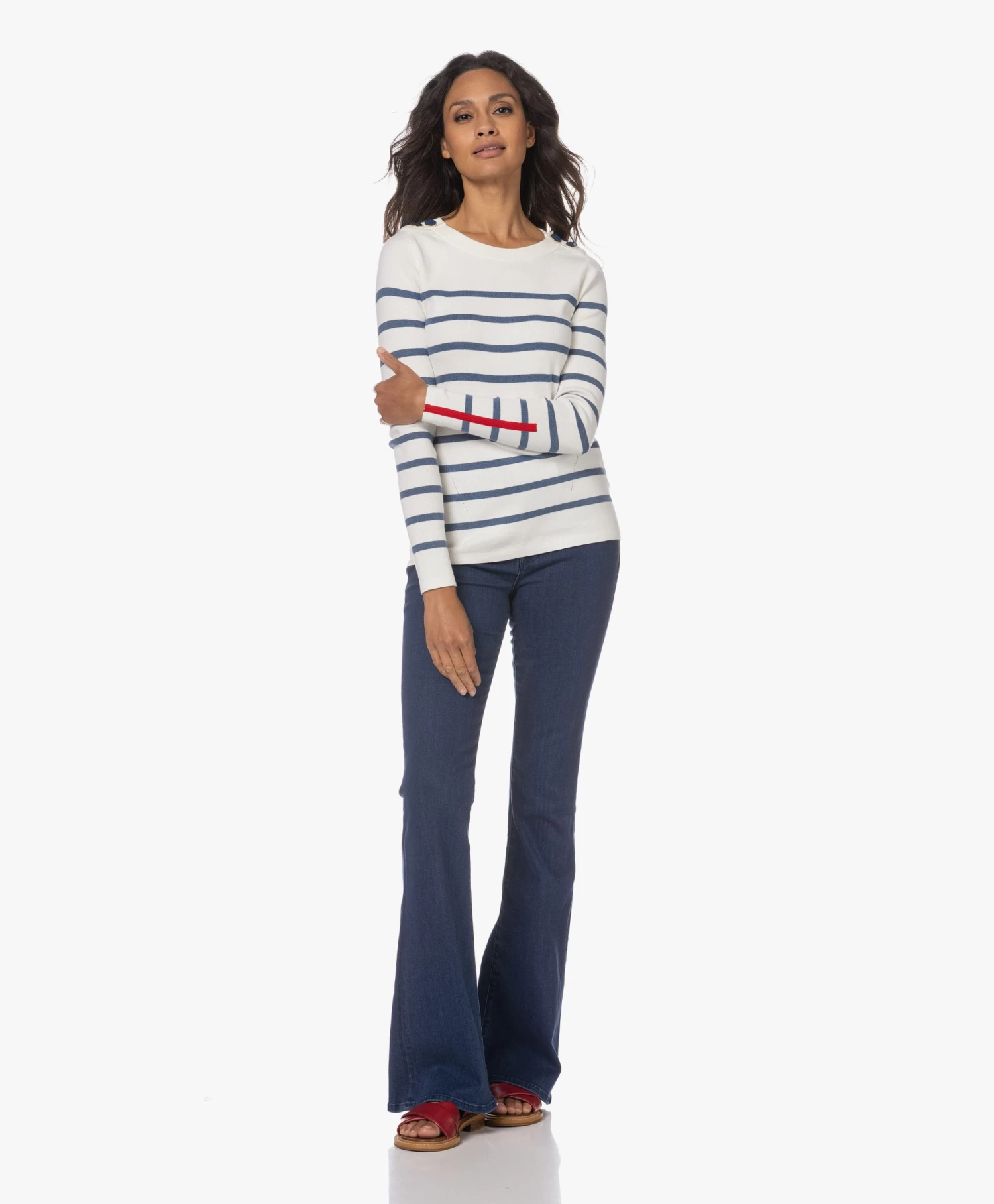 – Ronde, goudkleurige gesp met embossed merklogo