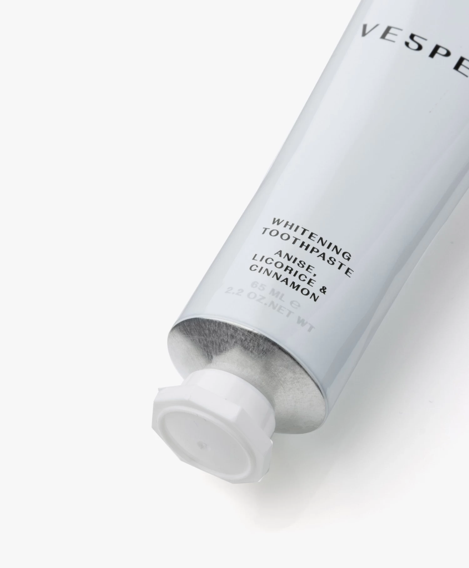Geef je alledaagse routine een luxe upgrade met de vegan tandpasta van Selahatin in de unieke smaak Vesper – een combinatie van anijs, drop en kaneel. De tandpasta met antioxidanten en fluoride is verrijkt met officieel gecertificeerde whitening ingrediënten voor een natuurlijk witter resultaat. Ontwikkeld met behulp van Zwitserlands meest toonaangevende mondverzorgingsproducenten en ontworpen met een minimalistisch Scandinavische verpakking – een combinatie die deze tandpasta favoriet maakt bij onze CEO Birgit.