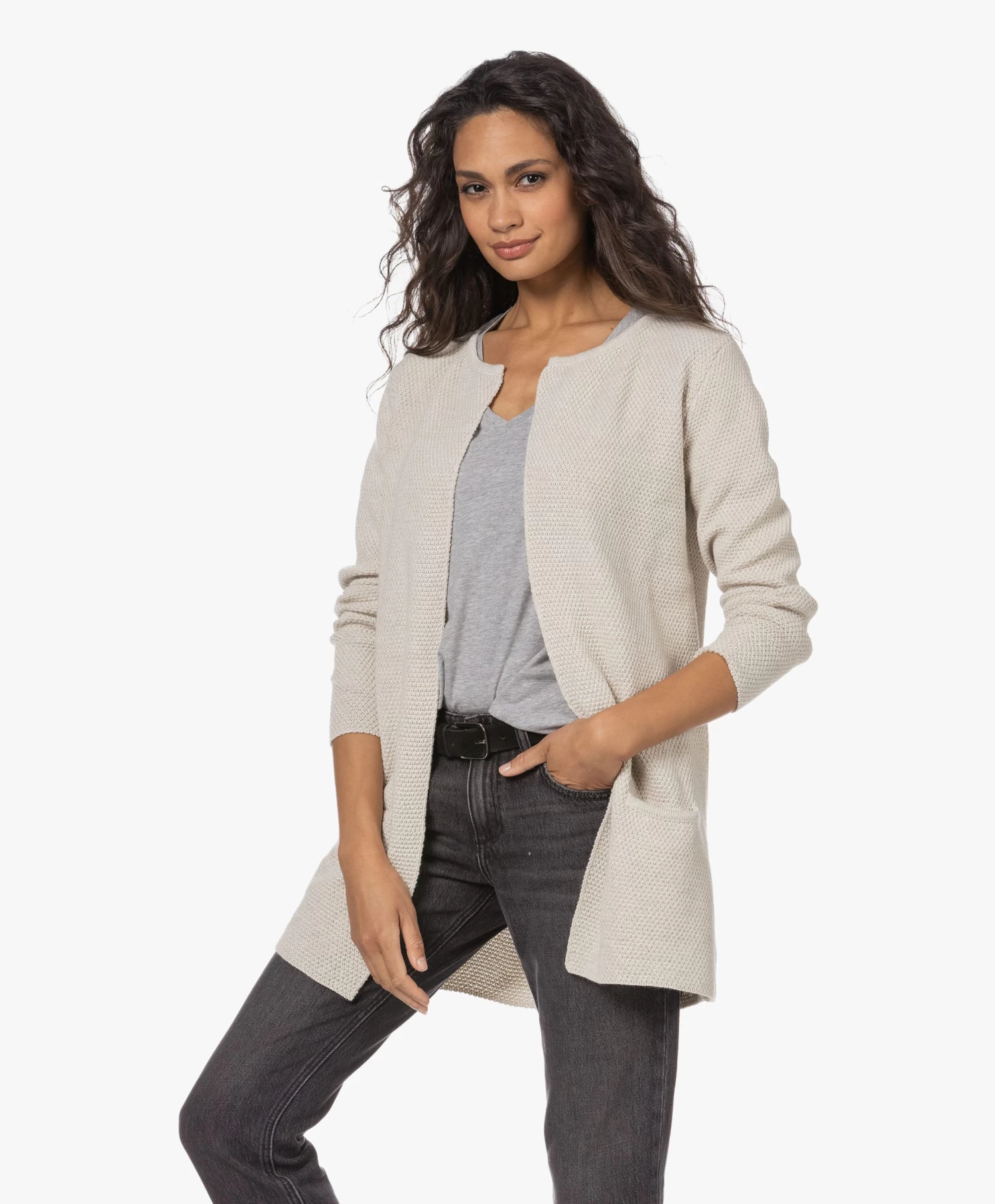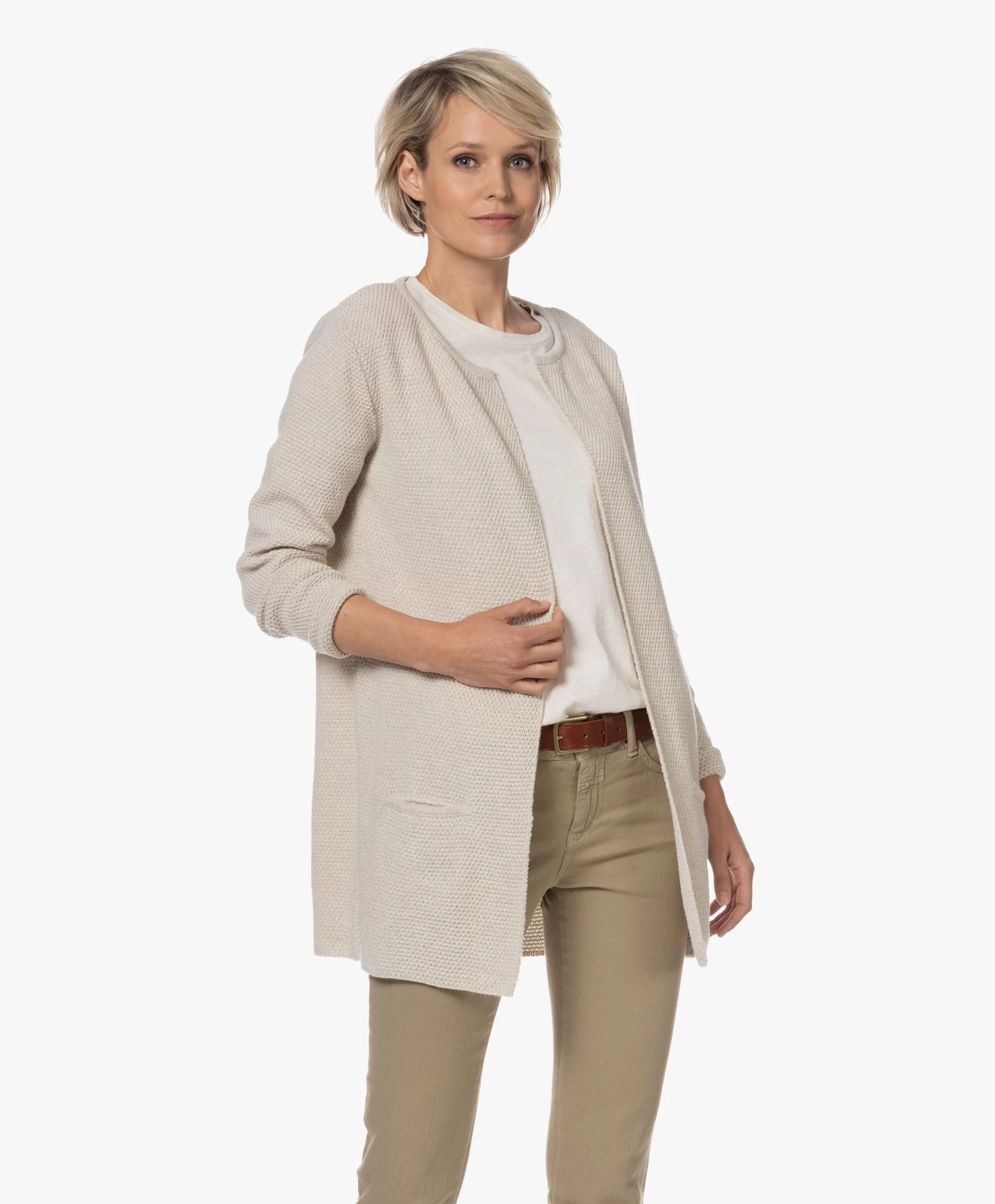 Veelzijdige keus om gelaagd te combineren, dit lichtbeige Mary vest in een modern gerstekorrel breisel. Sibin/Linnebjerg brengt het klassieke Mary vest in een korter design! Combineer het halflange vest over casual kledingstukken zoals een pocket T-shirt of over klassieke jersey jurken. Draag met een riem, of juist als open vest voor een meer relaxte look.