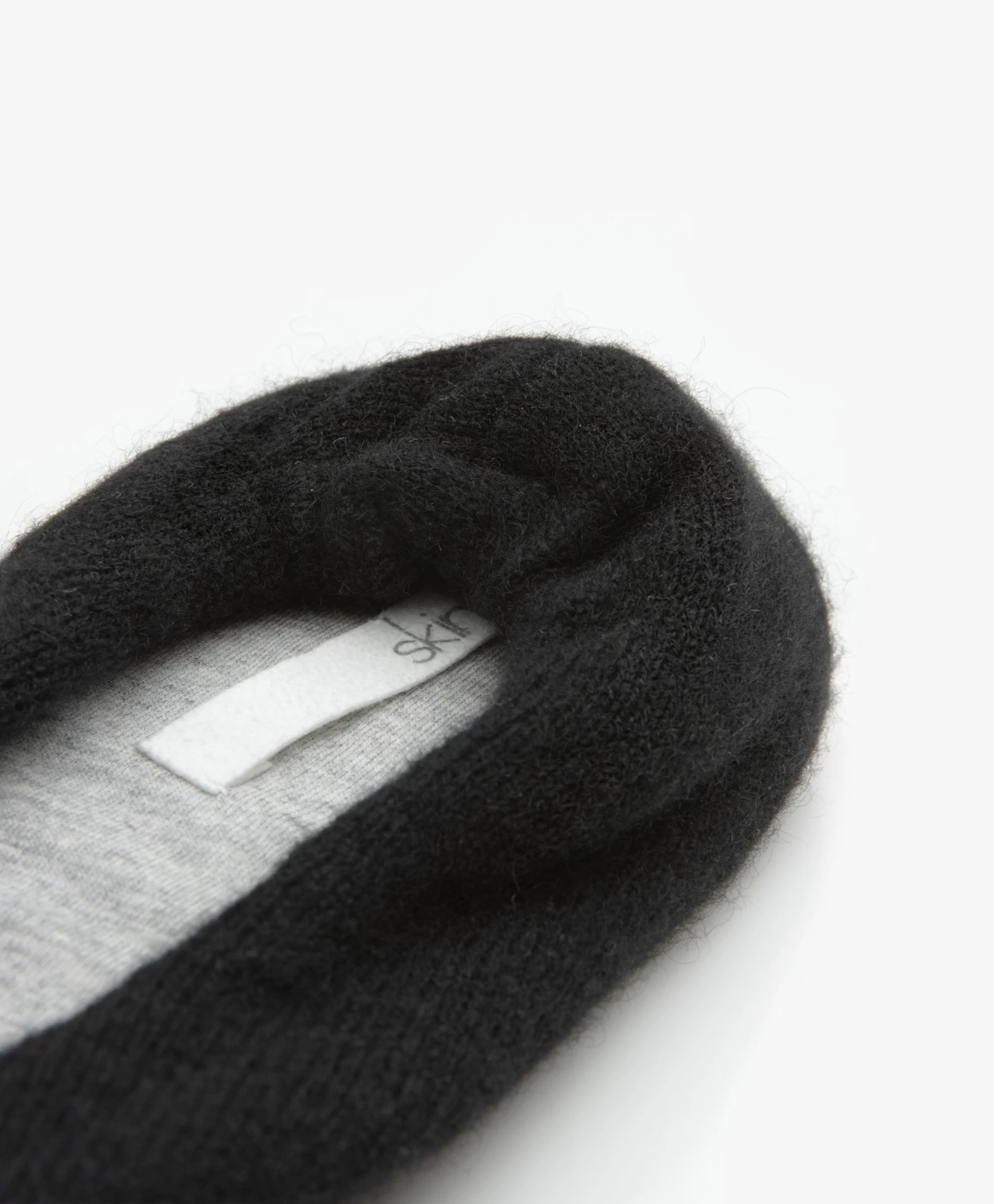 Jouw voeten verdienen het allerbeste, en dat is cashmere. Deze zwarte ballerina sloffen van Skin zijn gemaakt van een gebreide cashmere kwaliteit met een gewatteerd katoenen voetbed en een suède loopzool. Voorzien van elastiek en licht van gewicht om jou het gevoel te geven dat je niets draagt terwijl je voeten heerlijk warm blijven. En omdat Skin stiekem al weet dat je deze sloffen overal mee naartoe wilt nemen krijg je er een handige opbergzak bij.