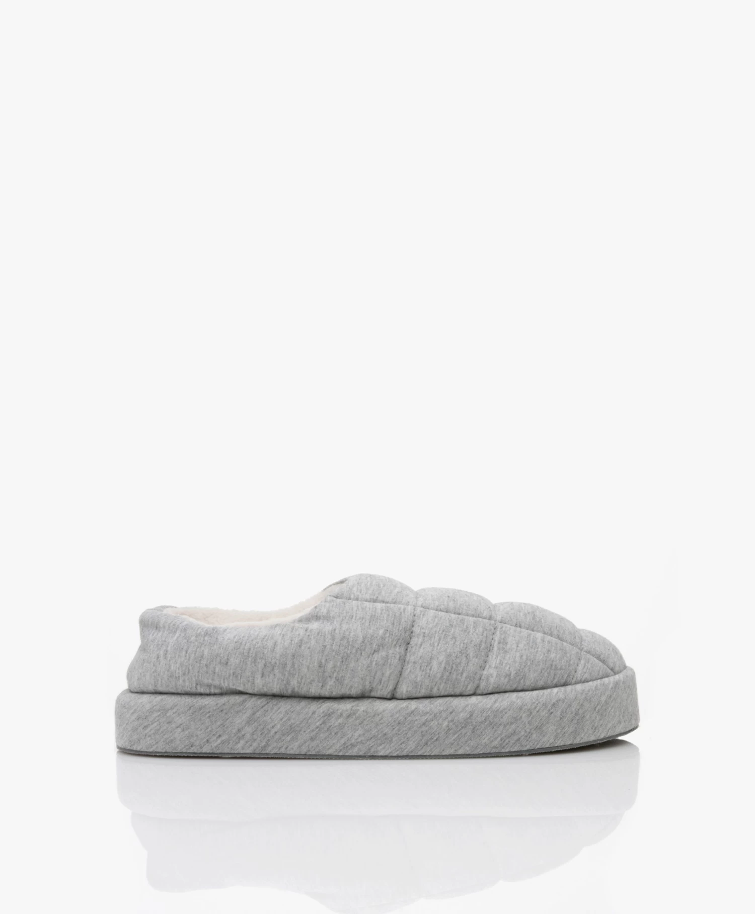 Staat er een dagje loungen op de planning? Deze grijs gemêleerde, gewatteerde clog pantoffels van Skin houden je voeten warm en comfortabel en zijn tegelijkertijd stevig genoeg om de hele dag op te vertoeven. Het gewatteerde en doorgestikte katoenen instapmodel is aan de binnenkant voorzien van ultra-zachte crèmekleurige fleece en heeft een 3cm hoge rubberen loopzool.