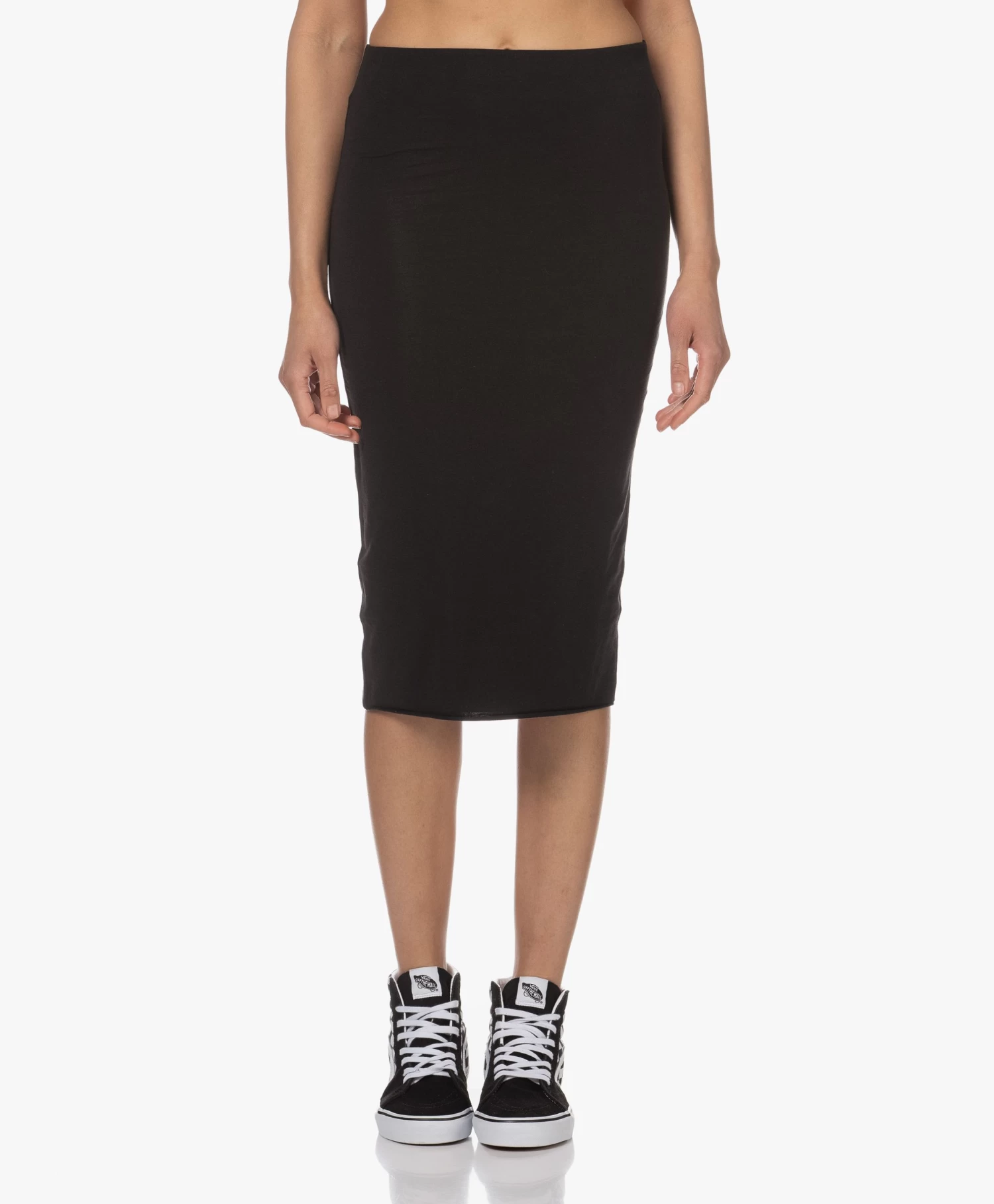 Een slim-fit jersey kokerrok die niet ‘tekent’ en je een gestroomlijnd silhouet geeft: laat dat maar aan Skin over. De zwarte Skin Terra rok is gemaakt van zacht en biologisch Pima-katoen, dubbellaags verwerkt en voorzien van vlak verwerkte zijnaden. De hoge elastische tailleband is onzichtbaar tussen de beide stoflagen verwerkt.