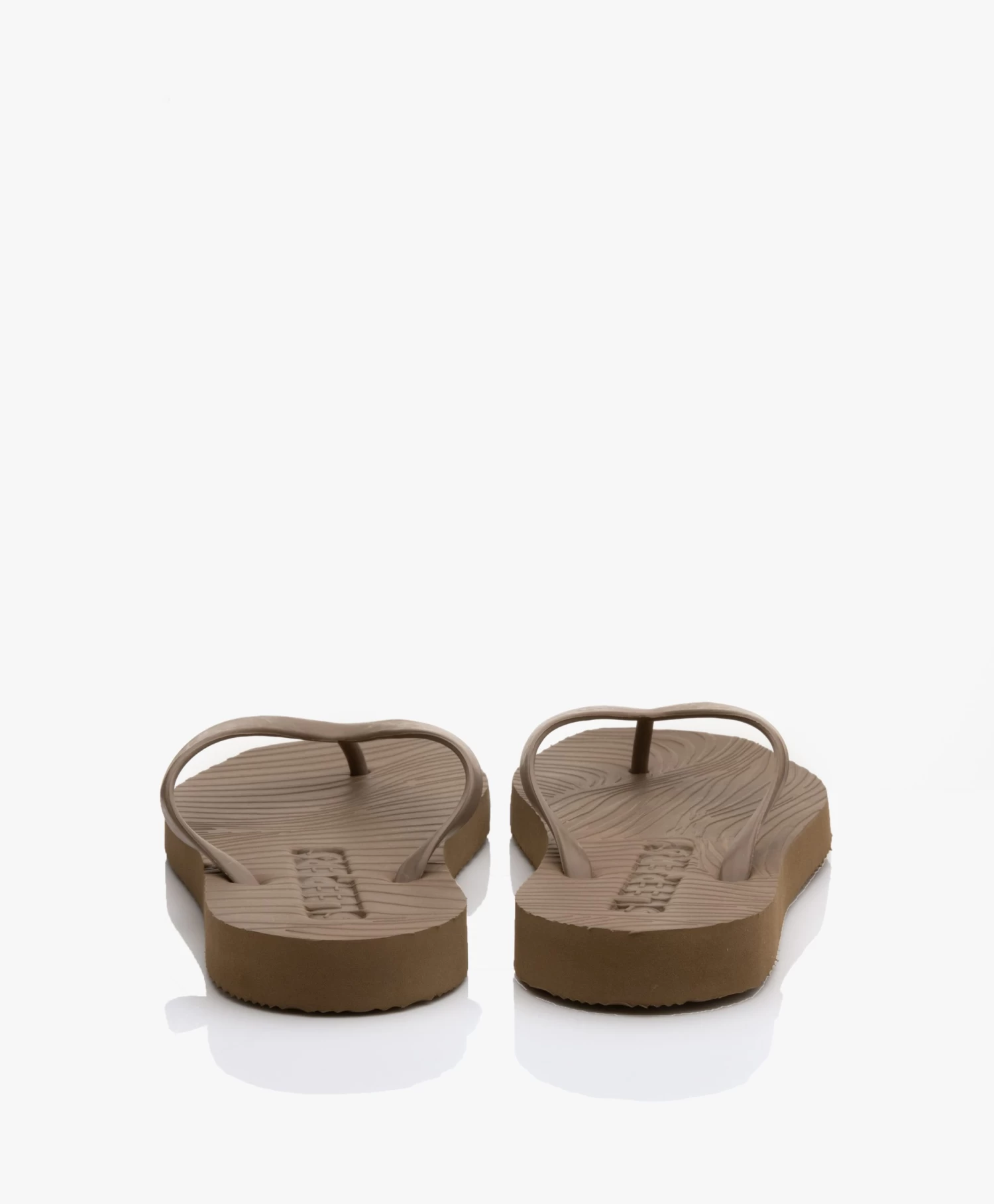 Sleepers laat met hun uiterst comfortabele teenslippers in een bruine tint zowel onze mode- als eco-harten sneller doen kloppen. De slippers komen in een fijne reeks van verschillende kleuren en zijn gemaakt van biologisch afbreekbaar natuurlijk rubber dat recyclebaar is, en met natuurlijke verf is gekleurd. Het ontwerp is eigentijds en laat een zool zien die naar de hiel toe iets grover wordt. Het voetbed vormt naar je voeten. Je nieuwe favoriete footwear item voor het komende seizoen is hiermee gevonden!