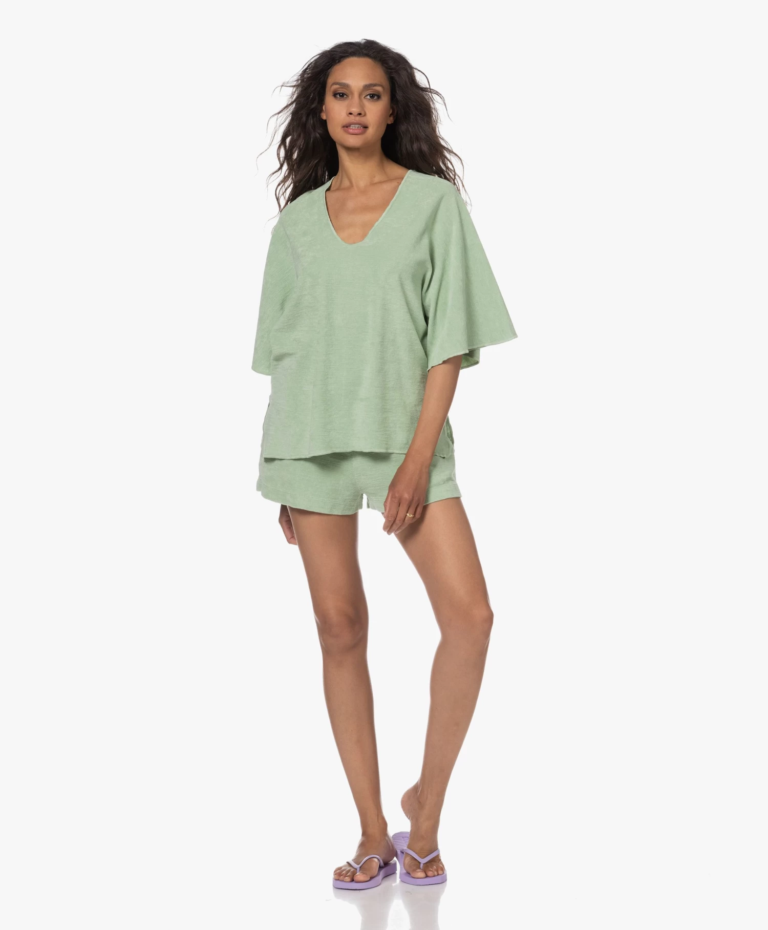Sleepers laat met hun uiterst comfortabele teenslippers in een lavendel tint zowel onze mode- als eco-harten sneller doen kloppen. De slippers komen in een fijne reeks van verschillende kleuren en zijn gemaakt van biologisch afbreekbaar natuurlijk rubber dat recyclebaar is, en met natuurlijke verf is gekleurd. Het ontwerp is eigentijds en laat een zool zien die naar de hiel toe iets grover wordt. Het voetbed vormt naar je voeten. Je nieuwe favoriete footwear item voor het komende seizoen is hiermee gevonden!