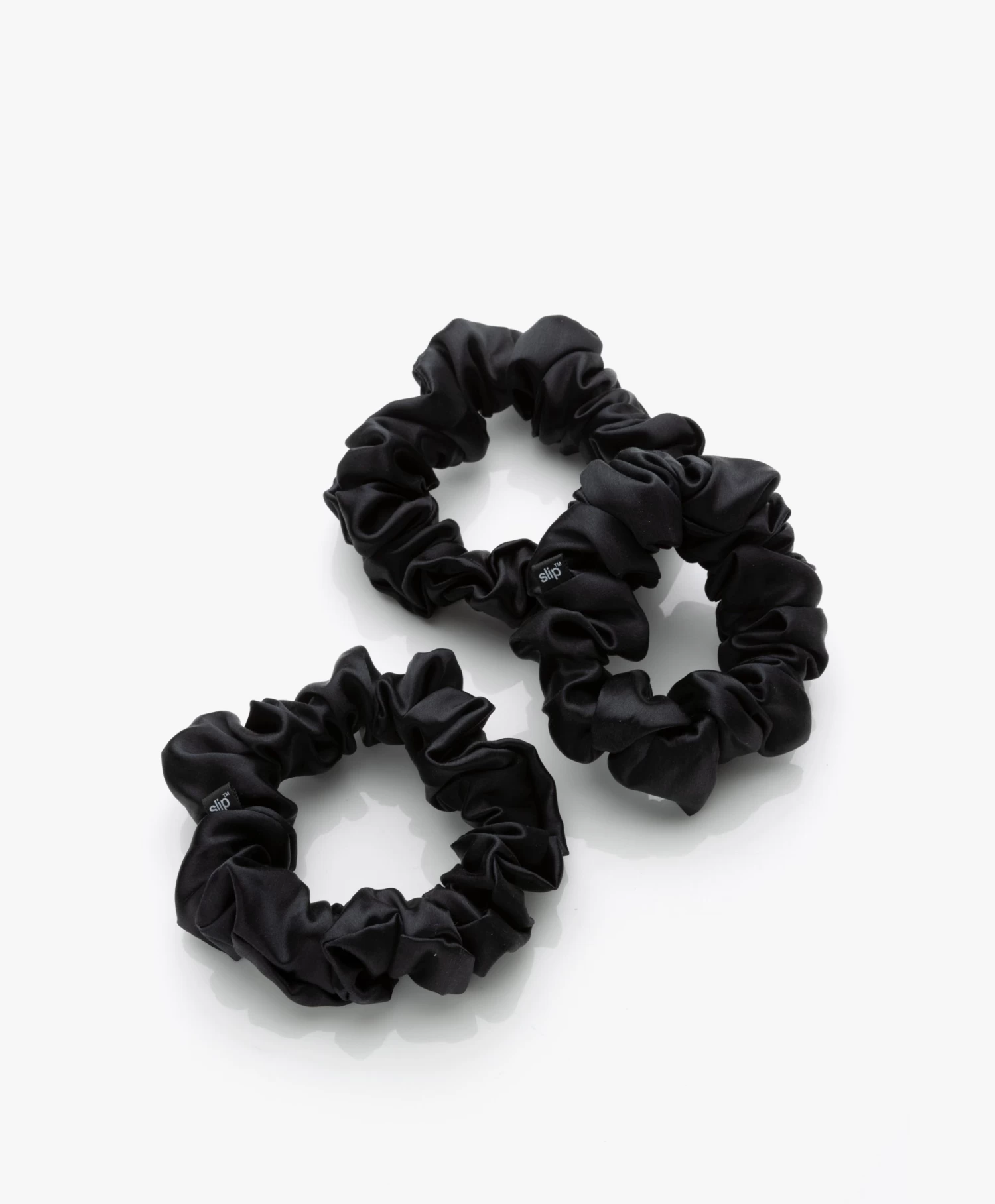 Tijd om je collectie haarelastieken een upgrade te geven. Dit 3 pack van slip™ bevat zwarte scrunchies die niet alleen stijlvol zijn, maar ook dienen als beschermend haaraccessoire dankzij de hoogste kwaliteit Mulbery zijde. De puur zijden kwaliteit heeft de perfecte glans, dikte en zachtheid waardoor haaruitval en beschadiging wordt voorkomen – met name tijdens het slapen.