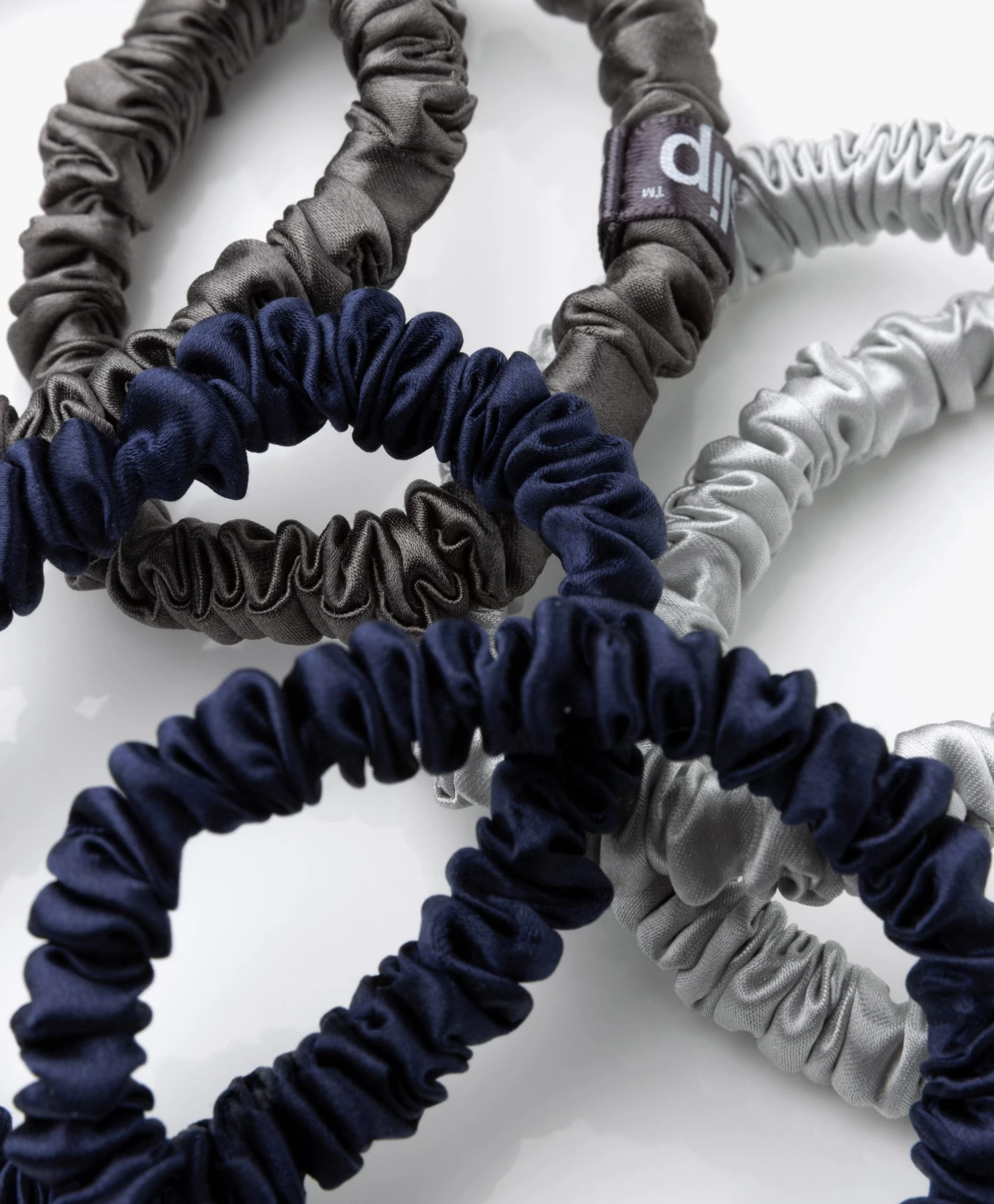 Tijd om je collectie haarelastieken een upgrade te geven. Dit 6 pack van slip™ bevat een mix van donkerblauwe, donkergrijze en lichtgrijze scrunchies die niet alleen stijlvol zijn, maar ook dienen als beschermend haaraccessoire dankzij de hoogste kwaliteit Mulbery zijde. De puur zijden kwaliteit heeft de perfecte glans, dikte en zachtheid waardoor haaruitval en beschadiging wordt voorkomen – met name tijdens het slapen.