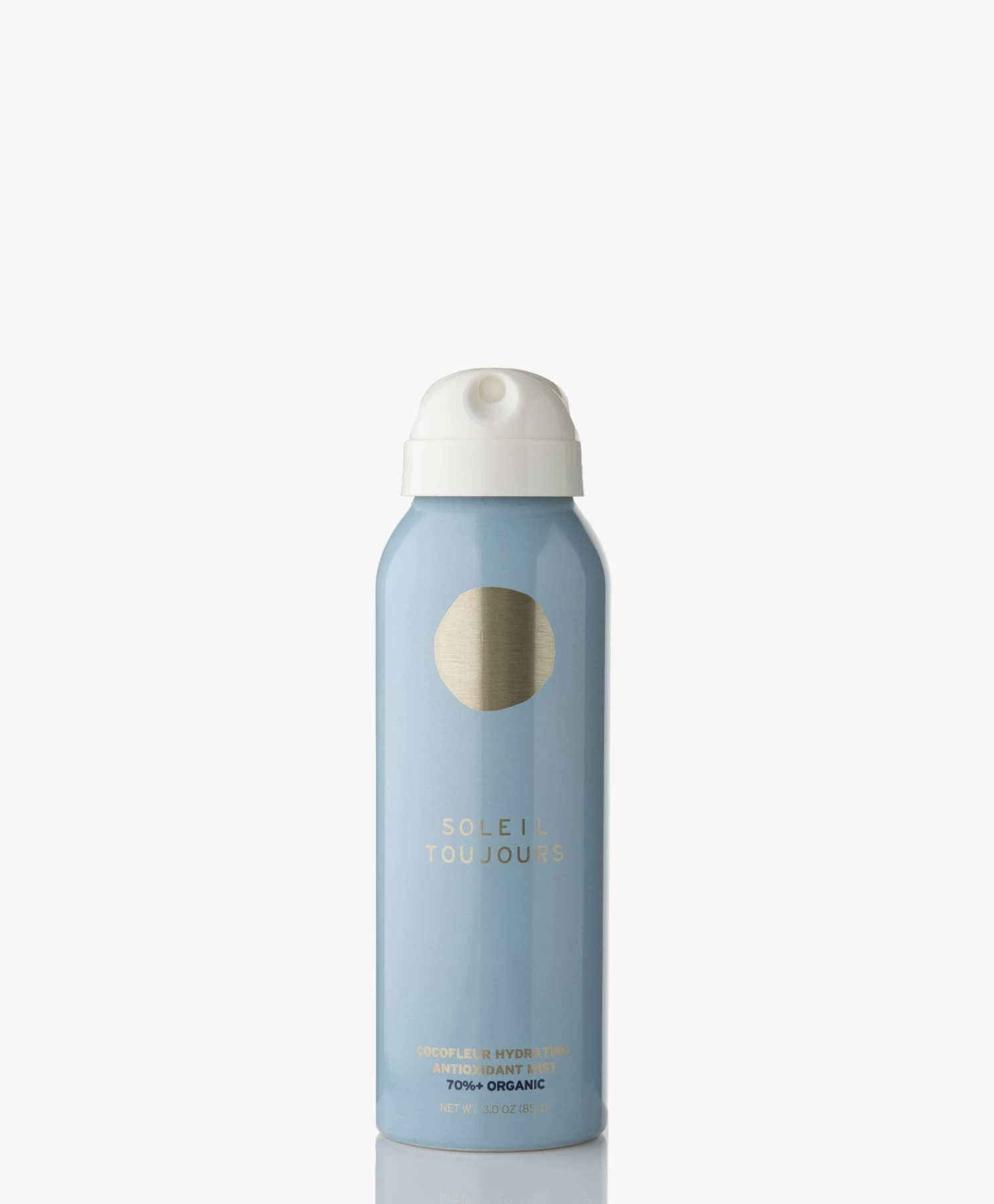 Speciaal samengesteld om de vermoeide en uitgedroogde huid weer in balans te brengen, deze Soleil Toujours Cocofleur Antioxidant Hydrating Mist. Een heerlijk luxe mist spray – rijk aan antioxidanten – die een gelijkmatige nevel verdeelt over de huid. Verrijkt met rozenwater, kokoswater en het gepatenteerde EcoSun Complex® van het merk. Ook geschikt voor gebruik als after sun product.