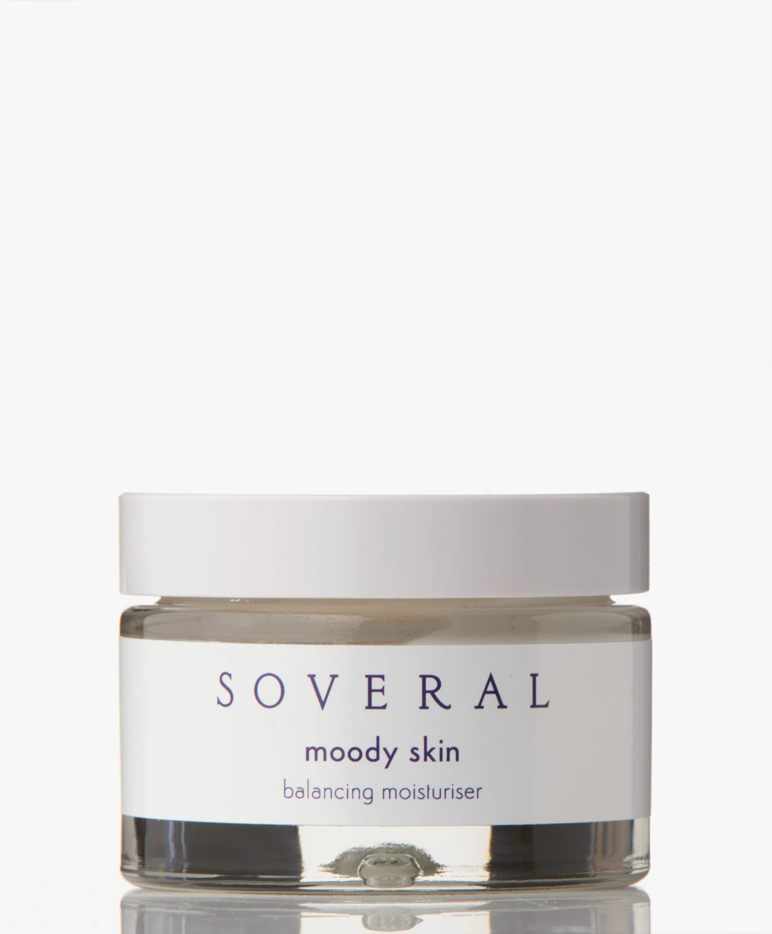 Deze Moody Skin Balancing Moisturiser van Soveral is speciaal ontwikkeld voor de gevoelige en probleemhuid. Deze lichtgewicht moisturizer hydrateert en beschermt terwijl de talgproductie wordt gereguleerd. De combinatie van essentiële oliën van lavendel en citroen creëert natuurlijke, antibacteriële en milde antiseptische eigenschappen die de huid kalmeren en ‘break-outs’ tegengaat. Deze moisturizer wordt makkelijk door de huid opgenomen en is ontwikkeld met niet-vettige oliën en natuurlijke vitamines, zodat de huid kan ademen en herstellen.