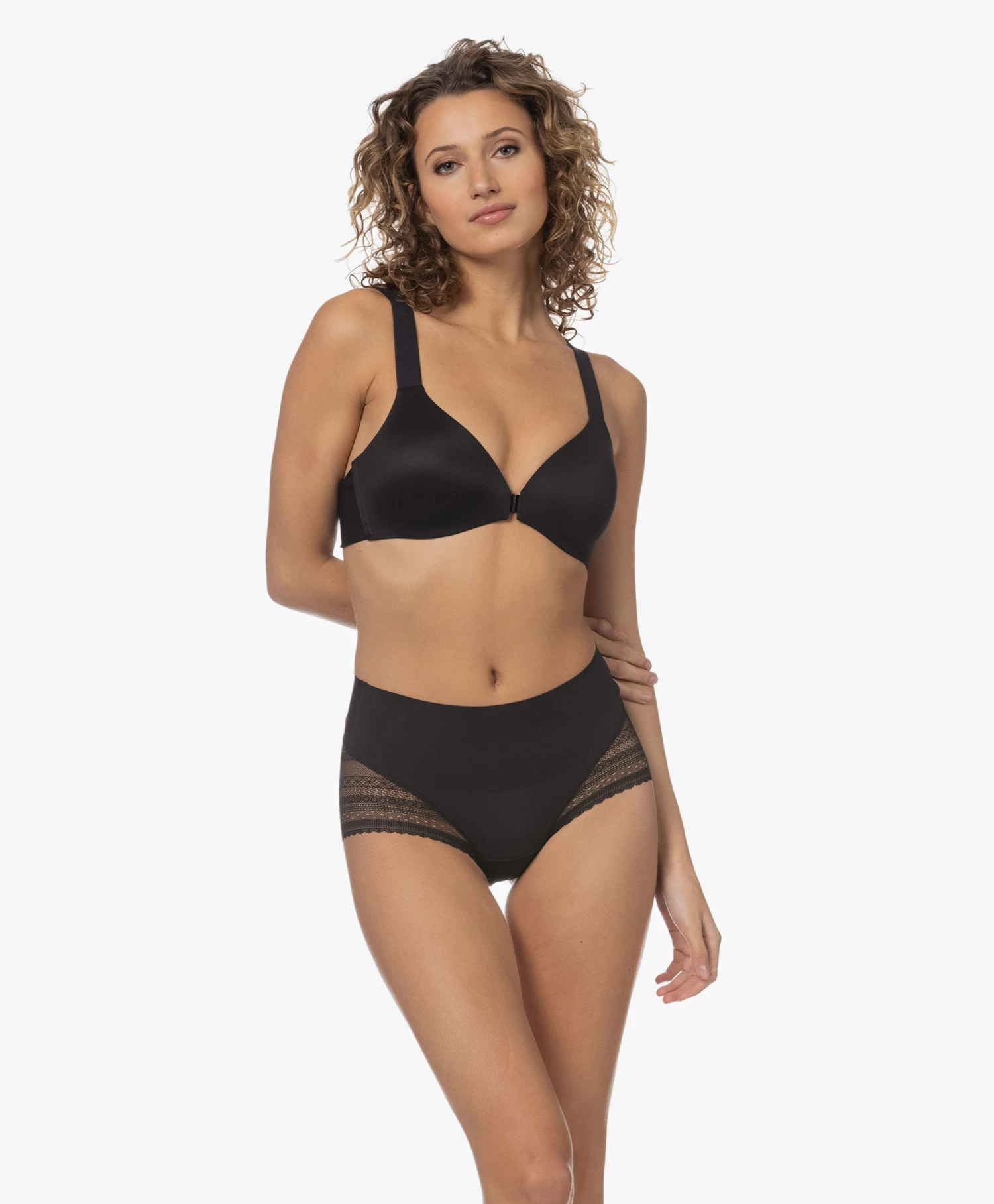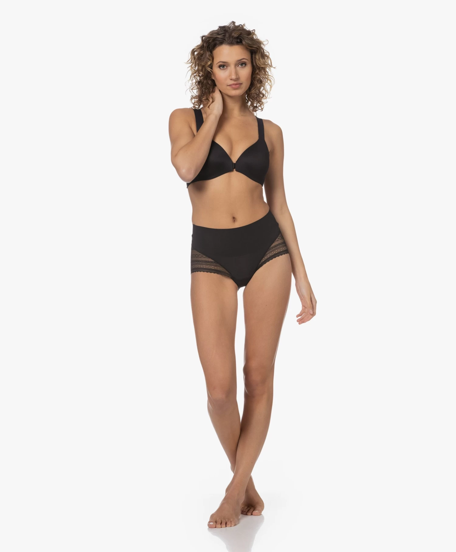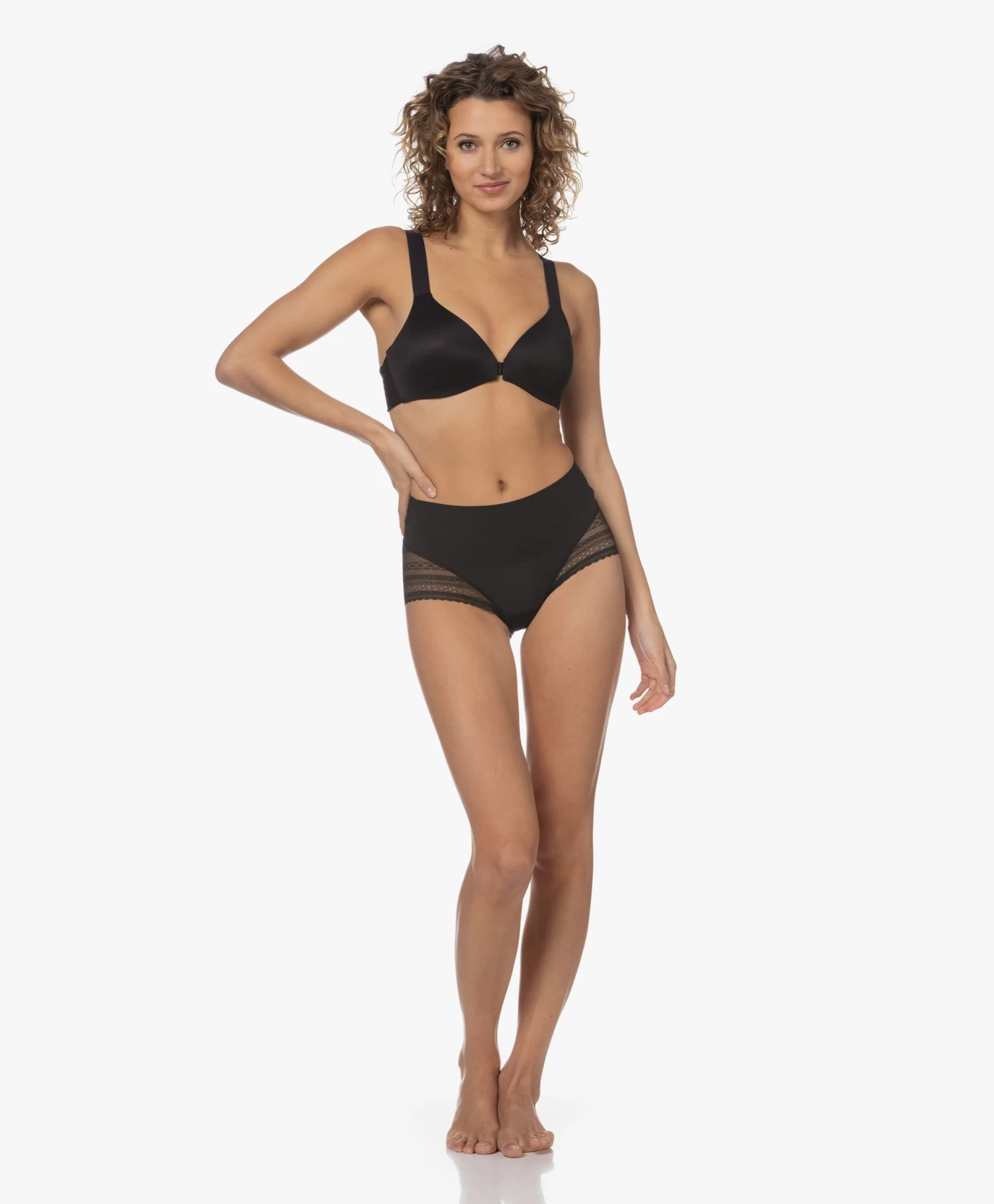 Als draagcomfort en een vrouwelijk ontwerp in gelijke mate belangrijk voor je zijn, dan is SPANX’ zwarte Undie-Tectable Illusion Lace Hi-Hipster echt iets voor jou. Het comfort van stevige, corrigerende stretch-jersey en de elegante uitstraling van luxe stretch-kant maken deze hoge taille-hipster uniek.
