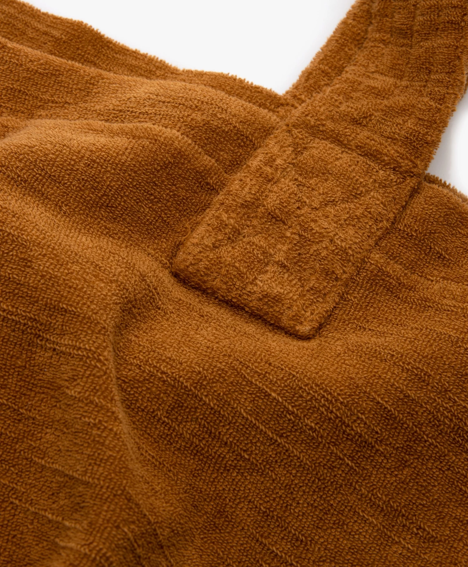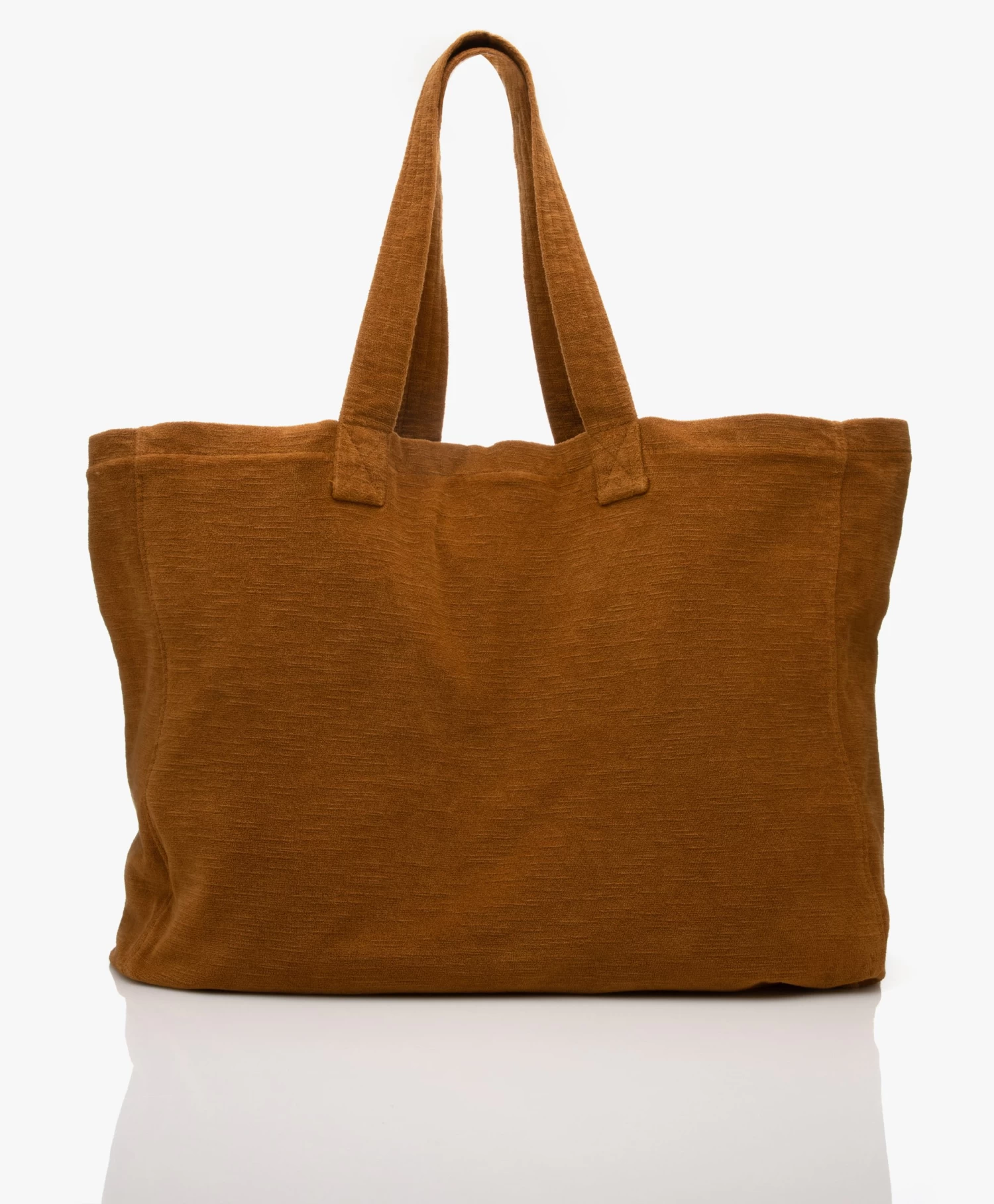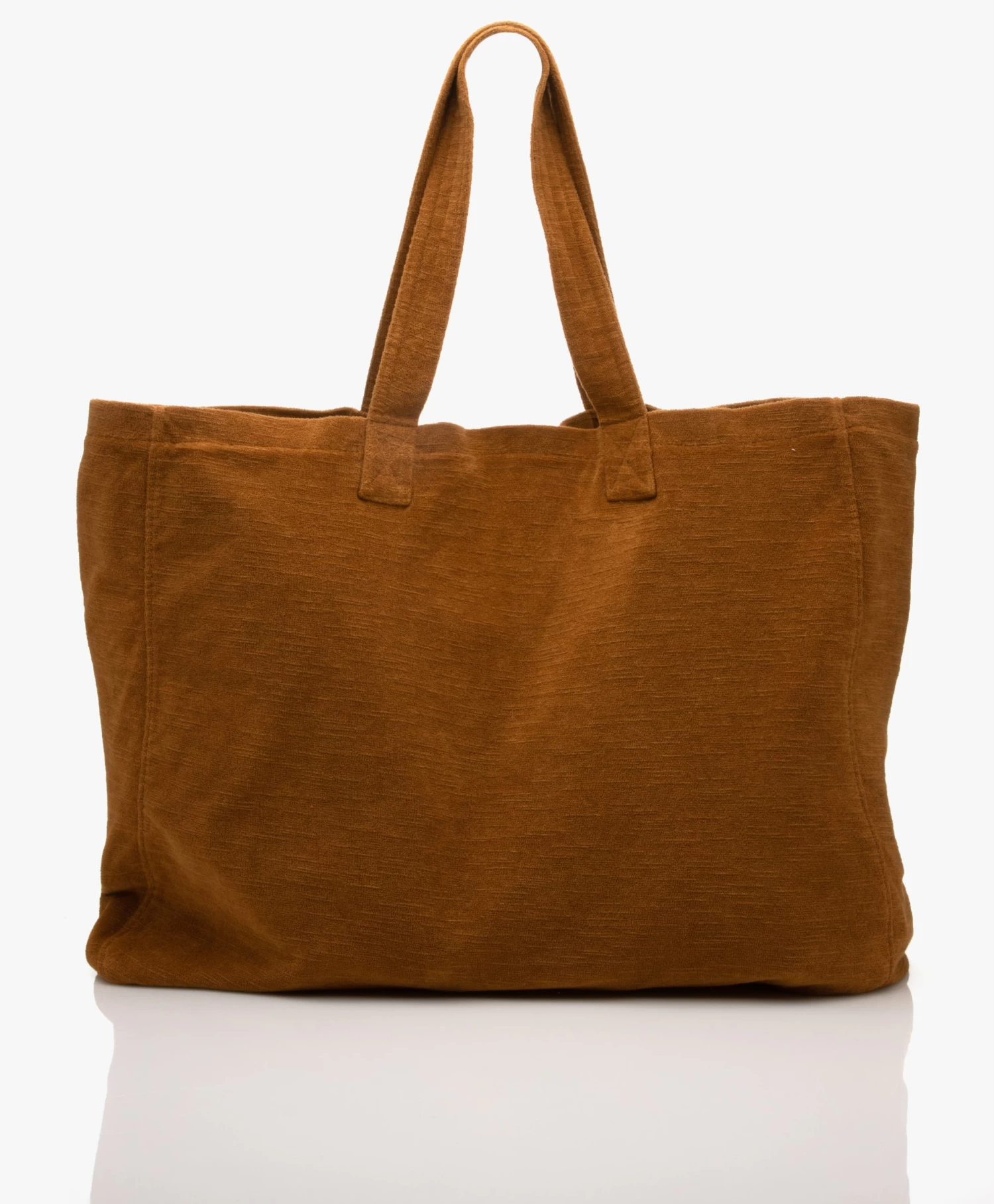 De eigentijdse minimalistische moeiteloosheid van de kaftans van Speezys Amsterdam wordt weerspiegeld in deze XXL gevoerde shopper van het merk – in een camelkleurige kleurtint. De eenvoud in ontwerp zet de toon, terwijl een super stijlvolle look domineert. Deze rechthoekige shopper is gemaakt van een comfortabele badstoffen terry jersey kwaliteit van puur katoen met een ‘garment-dyed’ afwerking en een onregelmatige look voor een moderne twist – de geweven twill voering zorgt voor een mooi vormvast ontwerp.