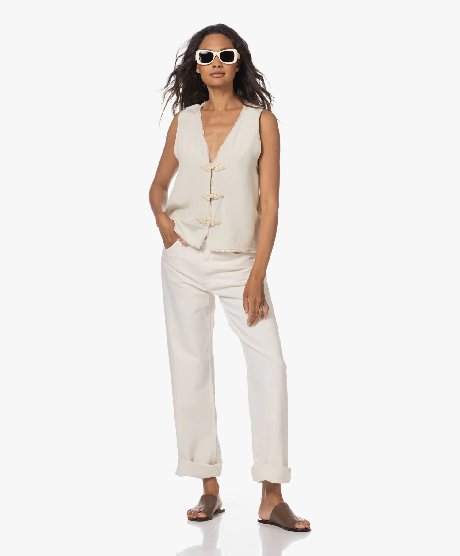 Een smaakmaker pur sang, deze The Island zonnebril van TOL Eyewear. Een jaren ’70 geïnspireerd montuurdesign met afgeronde, rechthoekige en donkergetinte Carl Zeiss glazen en een ecru kleurtint trekken de aandacht. De zonnebrillen van het Amsterdamse merk zijn handgemaakt in Italië van hoogwaardig Italiaans Mazzuchelli acetaat en zijn zowel een must als een lust voor het oog.