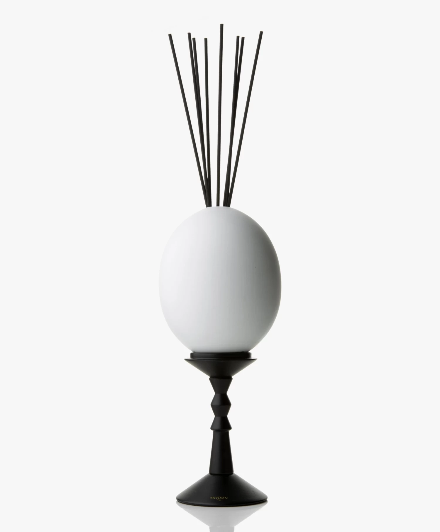 Trudon’s ‘L’oeuf’ diffuserset bestaat uit een ongeglazuurd wit keramisch ei dat op een elegante, matzwarte standaard staat, perfect passend bij de acht zwarte geurstokjes die de karakteristieke Abd El Kader geur verspreiden voor meer dan drie maanden. Deze geur neemt je mee vanaf de Mascara kust langs de bergen waar tonen van verse munt, de kruidige geur van gember en noten van thee, vanille en tabak van de Ouiled Nail-stam je tegemoet komen. Voor een onmiskenbaar gevoel van vrijheid.