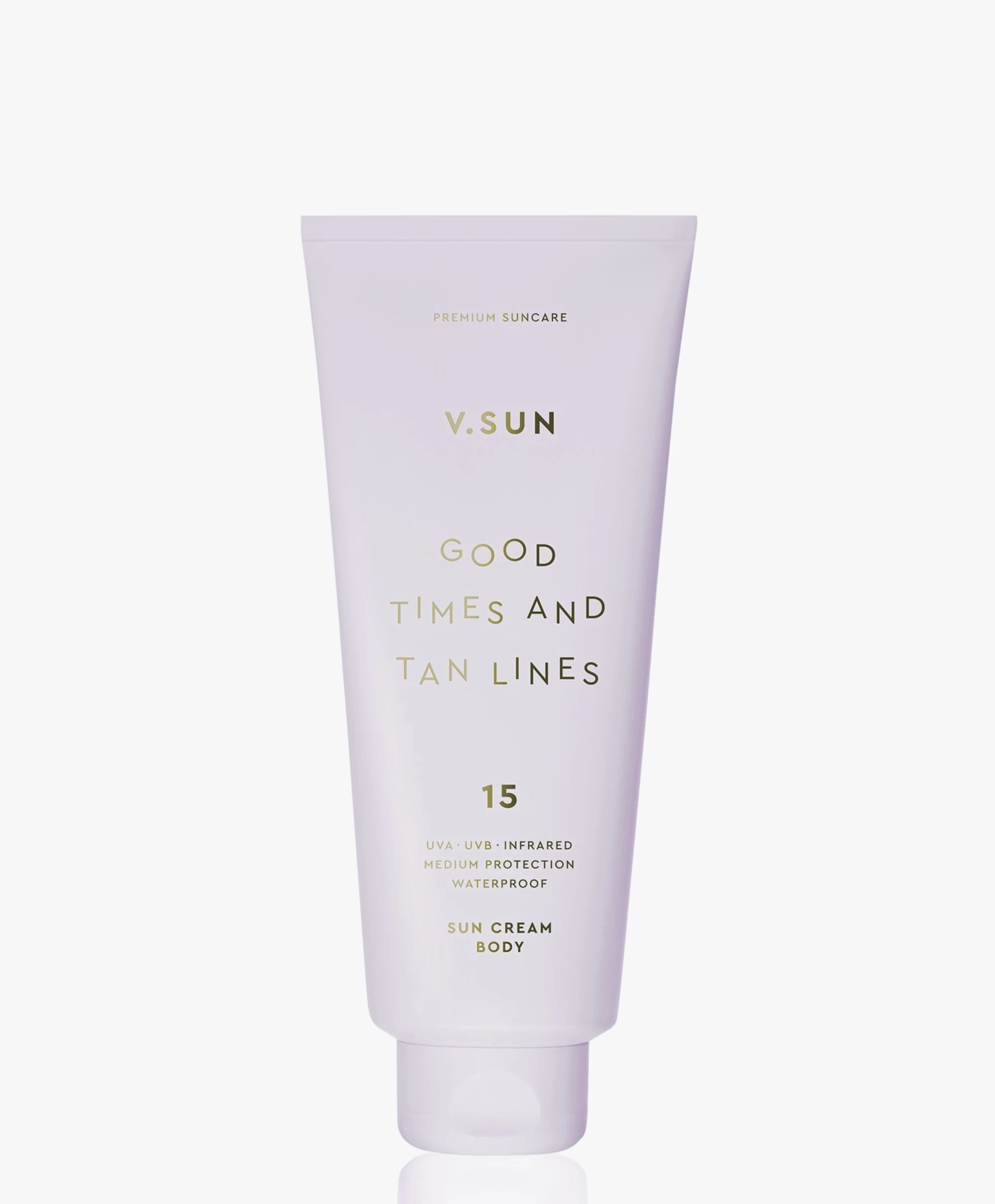 Deze V.SUN zonnebrandcrème voor het lichaam met SPF 15 beschermt de huid tegen de zon zonder schade aan te brengen aan de koraalriffen – win-win! Verrijkt met sheaboter en aloë vera voor intense hydratatie en vitamine E en ectoïne om vroegtijdige huidveroudering veroorzaakt door de zon tegen te gaan. De lichte, niet-plakkende formule trekt snel in en laat geen witte waas achter op de huid. De subtiele vanille-bloemengeur brengt je gegarandeerd in zomerse sferen.