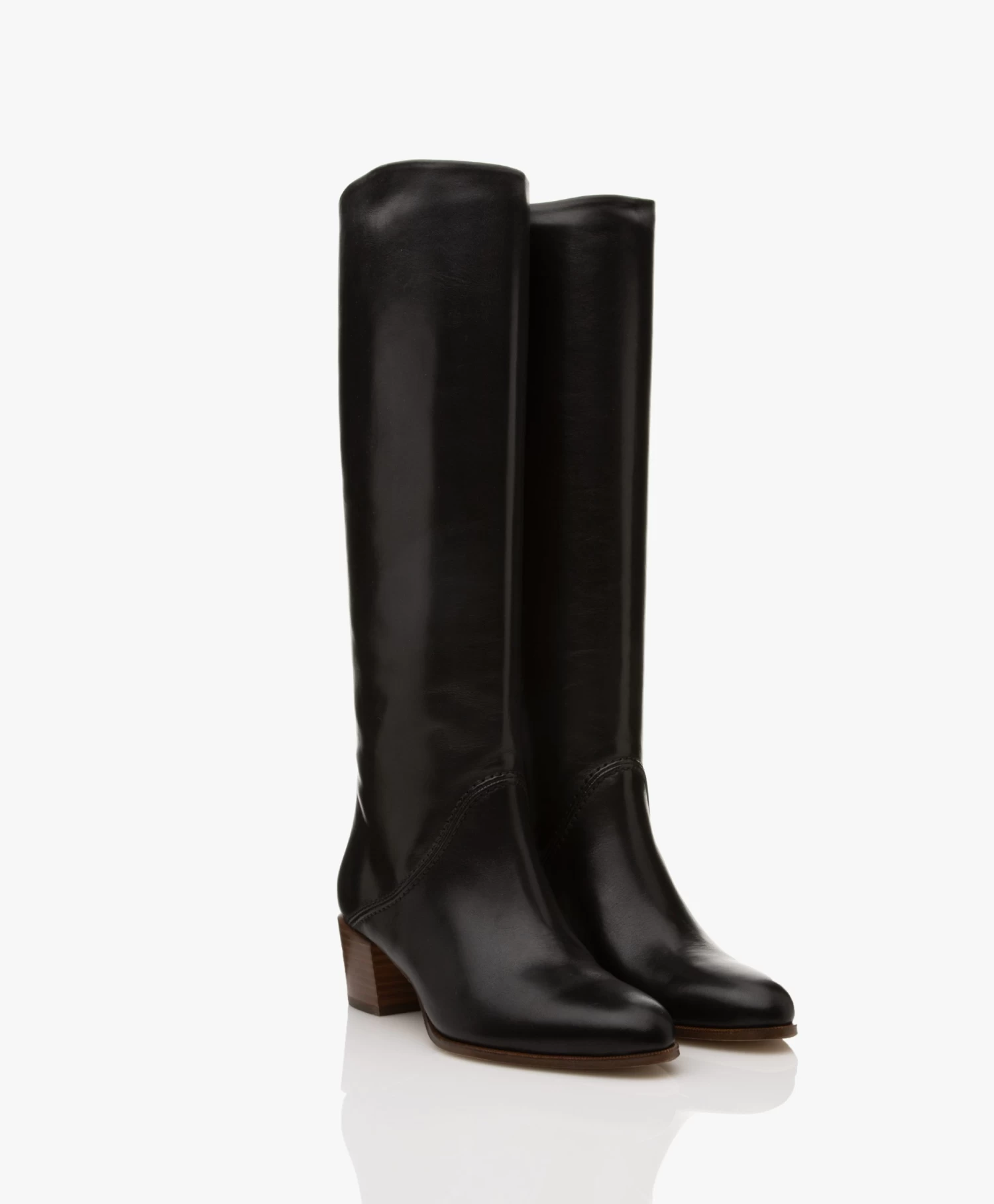 Hoge leren laarzen voor iedere dag? Check! Dit zwarte paar van Vanessa Bruno heeft een blokhak van 4.5cm en een wijde schacht – een type laars dat tijdloos & klassiek combineert met de looks van nu. Van het bovenwerk tot de hak en de binnen- en buitenzool: alles in deze laars is gemaakt van de hoogste kwaliteit leer, waarbij de diagonale siernaad typerend is voor het merk.