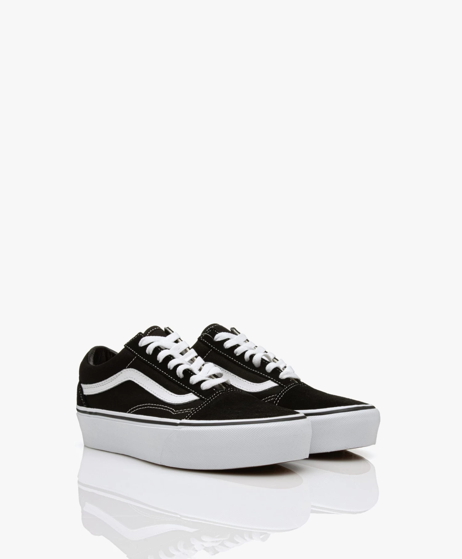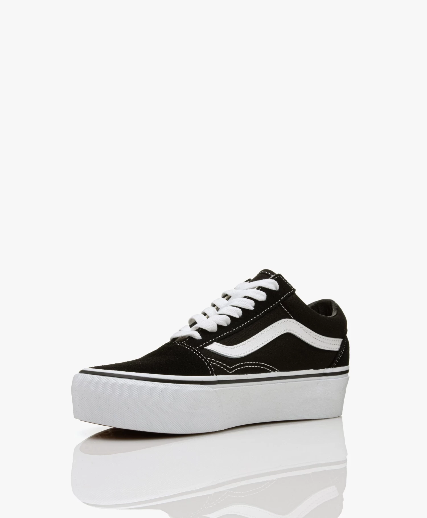 De sneaker die simpelweg altijd goed is. De Old Skool Platform sneakers van Vans zijn met recht iconisch te noemen. Gemaakt van een mix van suède en canvas in zwart met witte details, waarbij een gewatteerde ‘kraag’ met leren afwerking aan de binnenkant én de 3cm hoge platformzool ervoor zorgen voor eindeloos loopcomfort – dag in, dag uit.