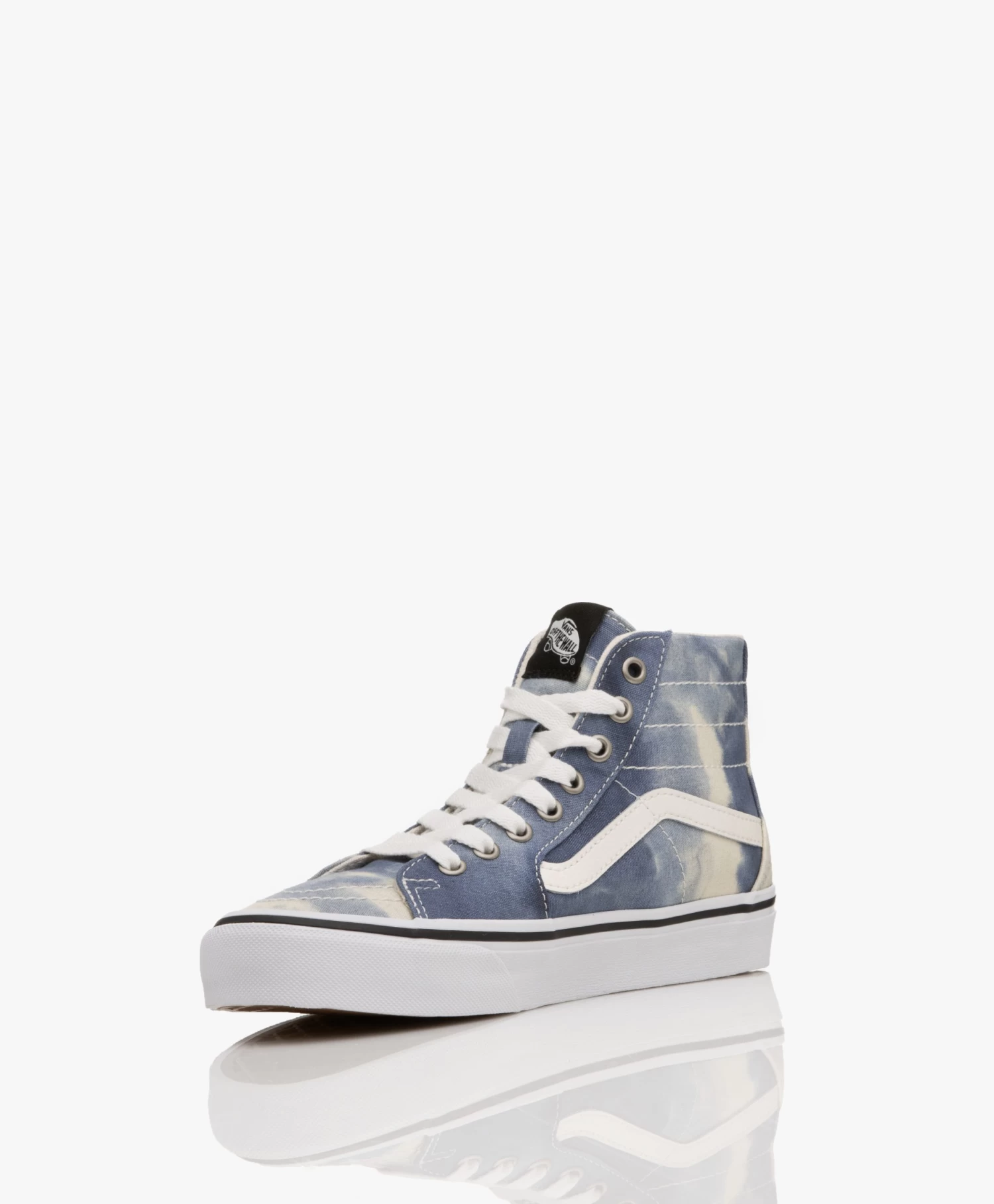 Een unieke variant op de o-zo iconische SK8-HI high-top sneakers van Vans. Deze sneakers vallen op met hun tie-dye print in blauwtinten: een match made in heaven met al je denim items. De mix van een canvas kwaliteit, doorgestikte details en een wit-leren logo is perfect op elkaar afgestemd. Een echte all-rounder die symbool staat voor comfort en ‘everyday’ stijl.