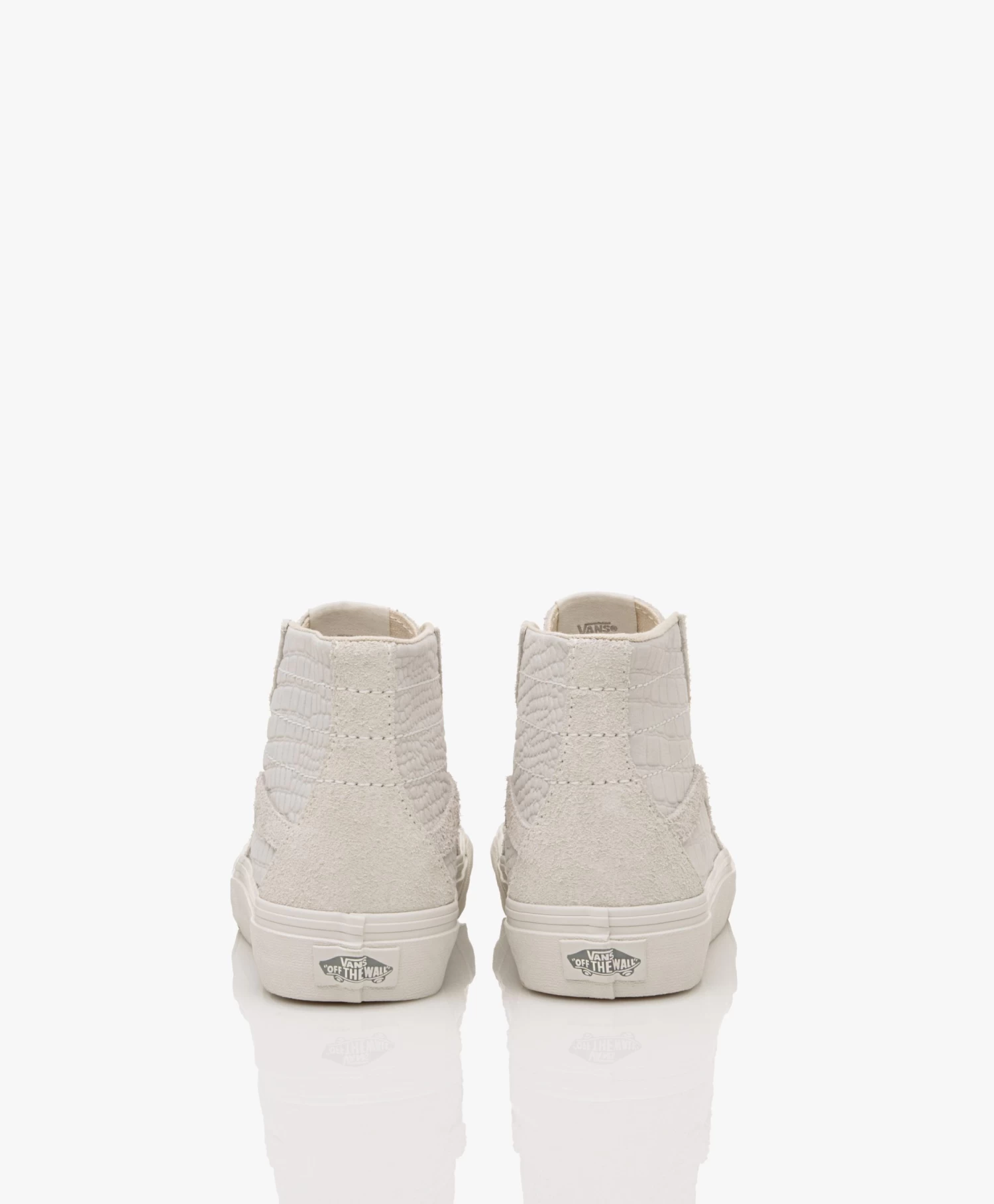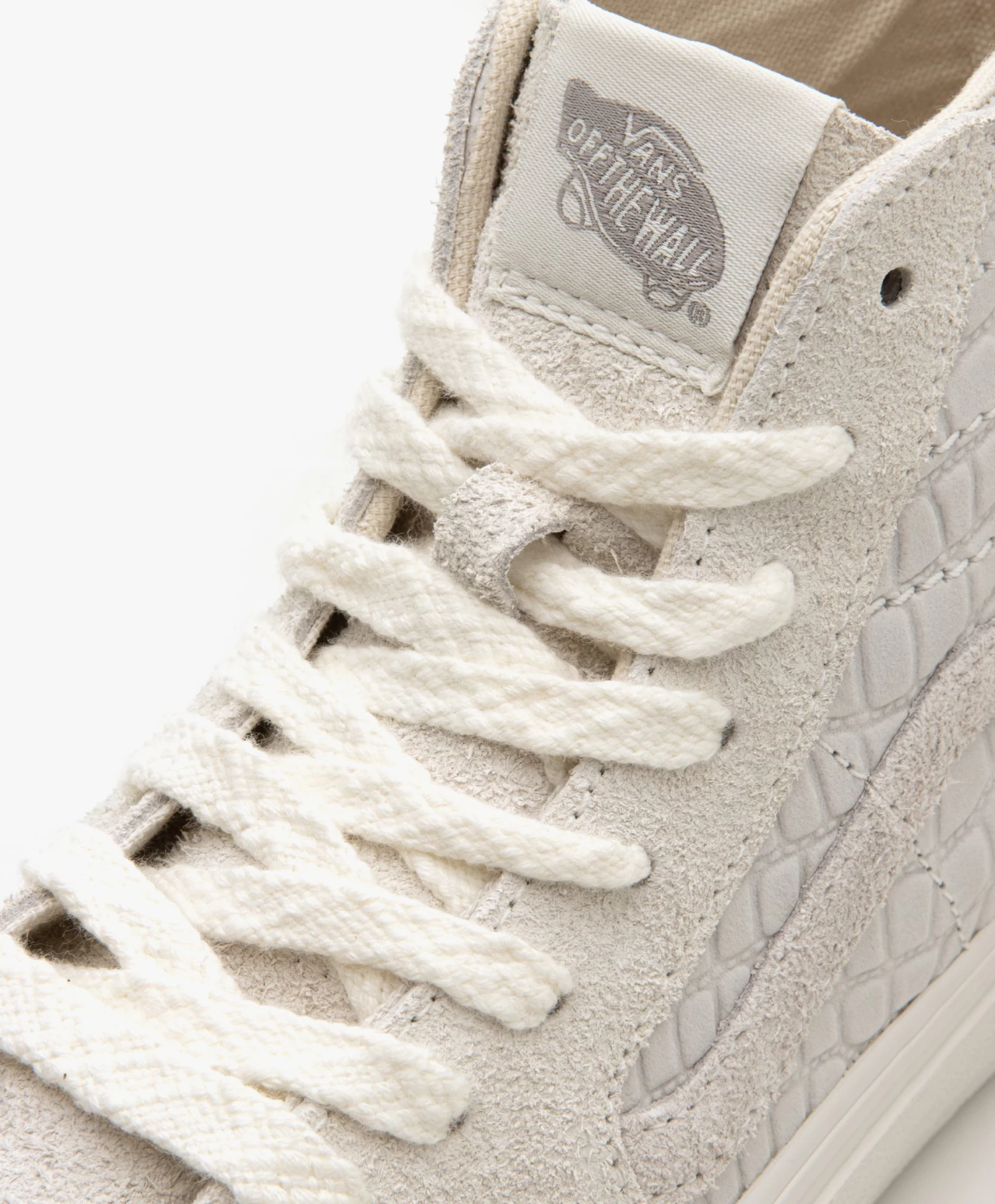 Een unieke variant op de o-zo iconische SK8-HI high-top sneakers van Vans: deze lichtgrijze mixed-media sneakers vallen op doordat de leren zijkant is bewerkt met een krokodillen-structuur. De mix van een suède neus, het gestructureerde leer, slub-geweven veters en witte stiksels perfect is perfect op elkaar afgestemd. Een echte all-rounder die symbool staat voor comfort en ‘everyday’ stijl.