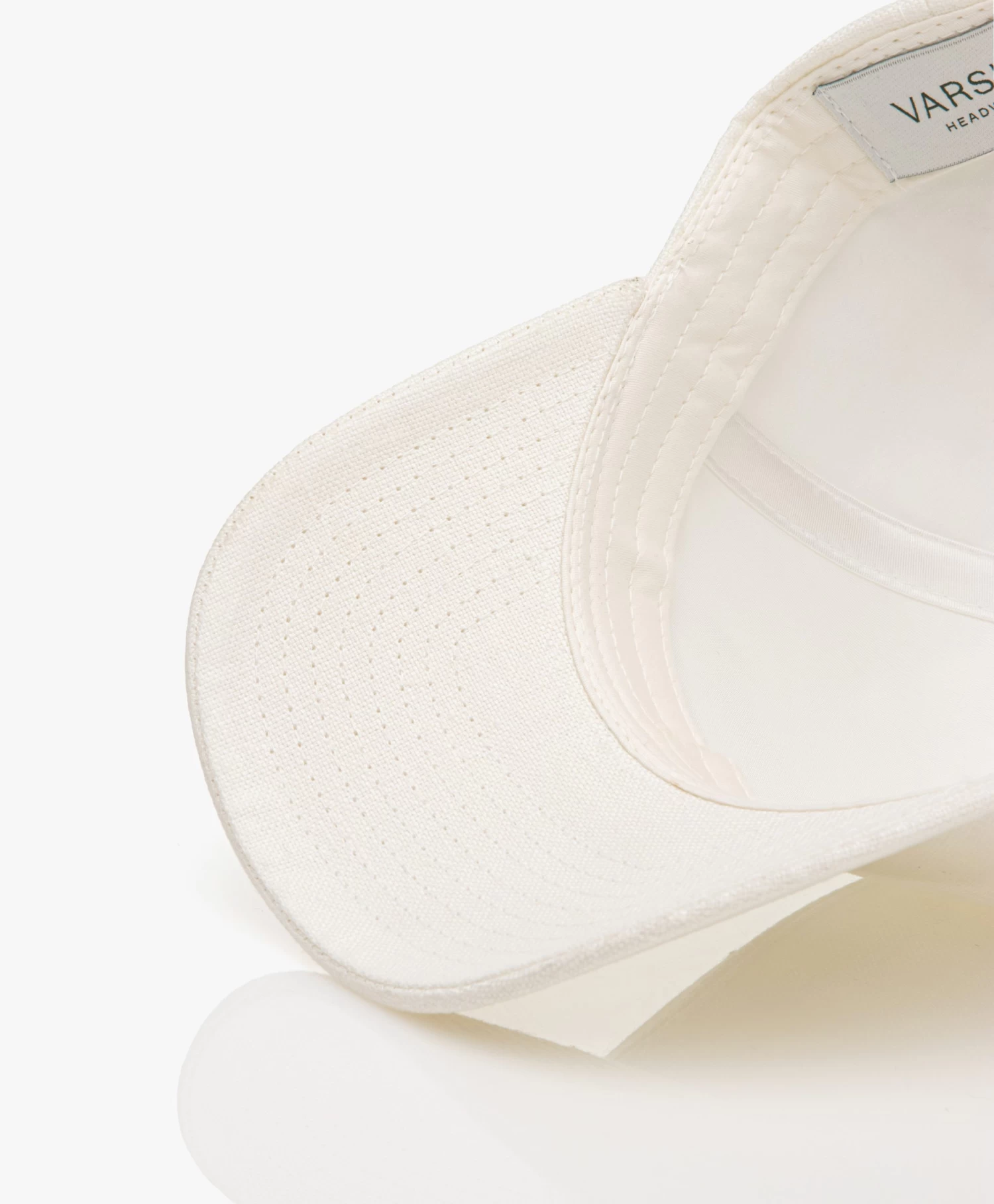 Het creëren van de perfecte pet was het doel van Varsity Headwear, en dat is meer dan gelukt. Pasvorm, kwaliteit en functie bepalen de look en feel, terwijl een luxe gevoel doordringt in alle facetten van het ontwerp. Deze lichtgewicht en ademende, off-white unisex pet is gemaakt van een fijn geweven linnen kwaliteit met een gemêleerd oppervlak.