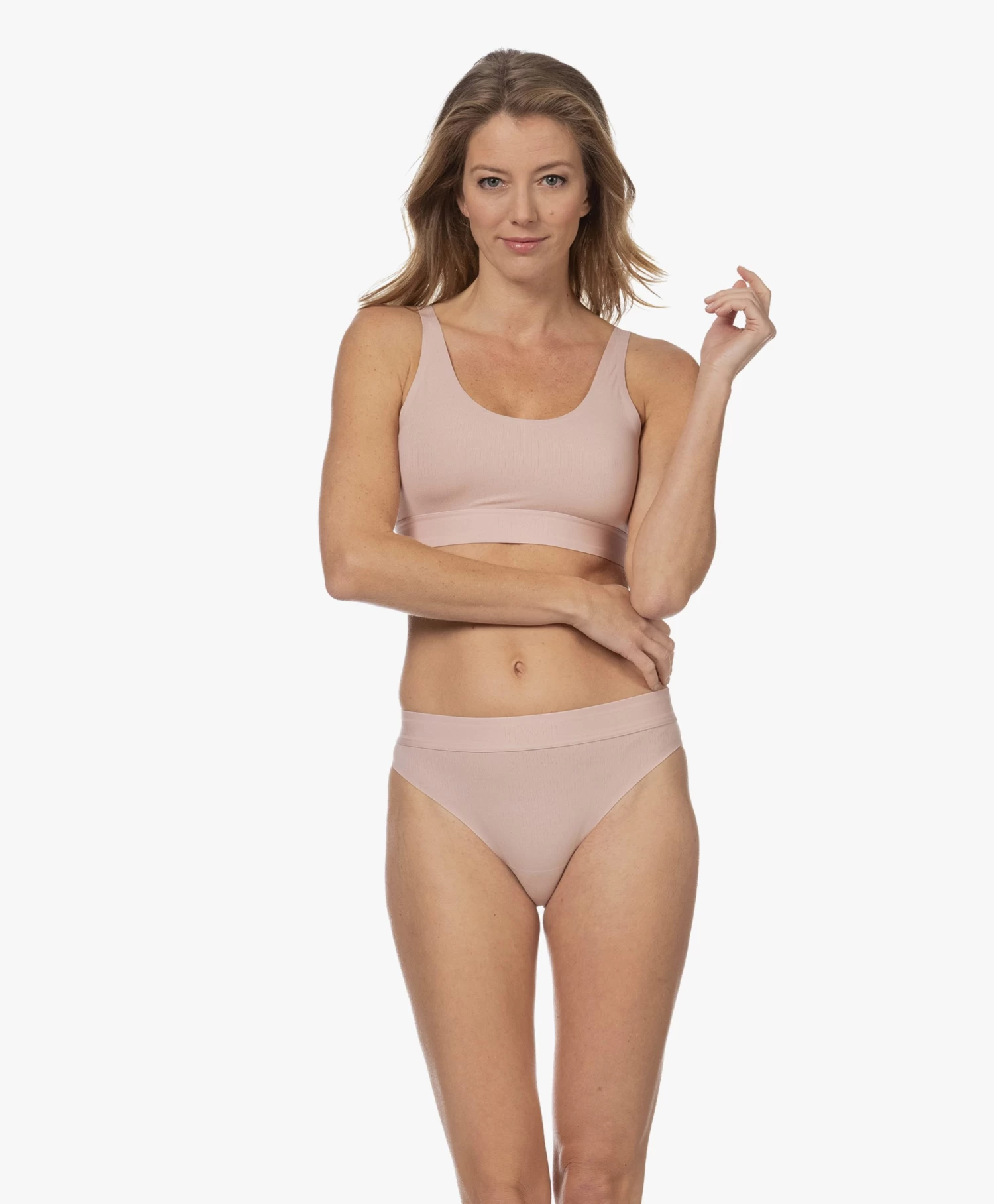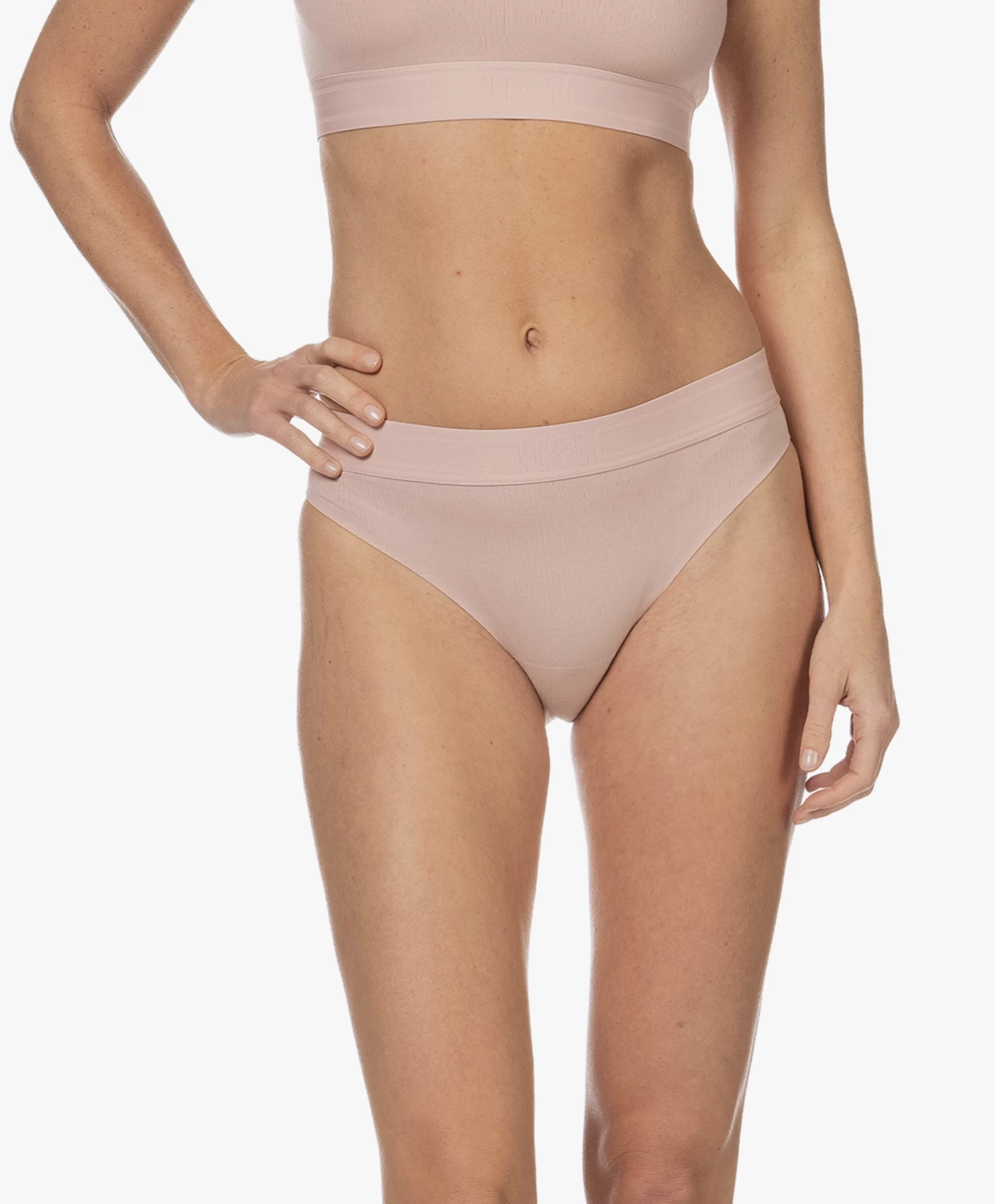 Wolford zet hun innovatieve rib-jersey in voor deze poederroze slip en dat betekent: ultiem comfort, optimaal ademend vermogen én een gladde basis onder kledingstukken. De soepele stof – die verrassend genoeg grotendeels uit katoen bestaat – voelt glad en bovenal ultra-zacht aan op de huid en heeft een naadloze, bonded afwerking. Een brede elastieken tailleband met ingeweven logo verhoogt het comfortgehalte nog eens extra.