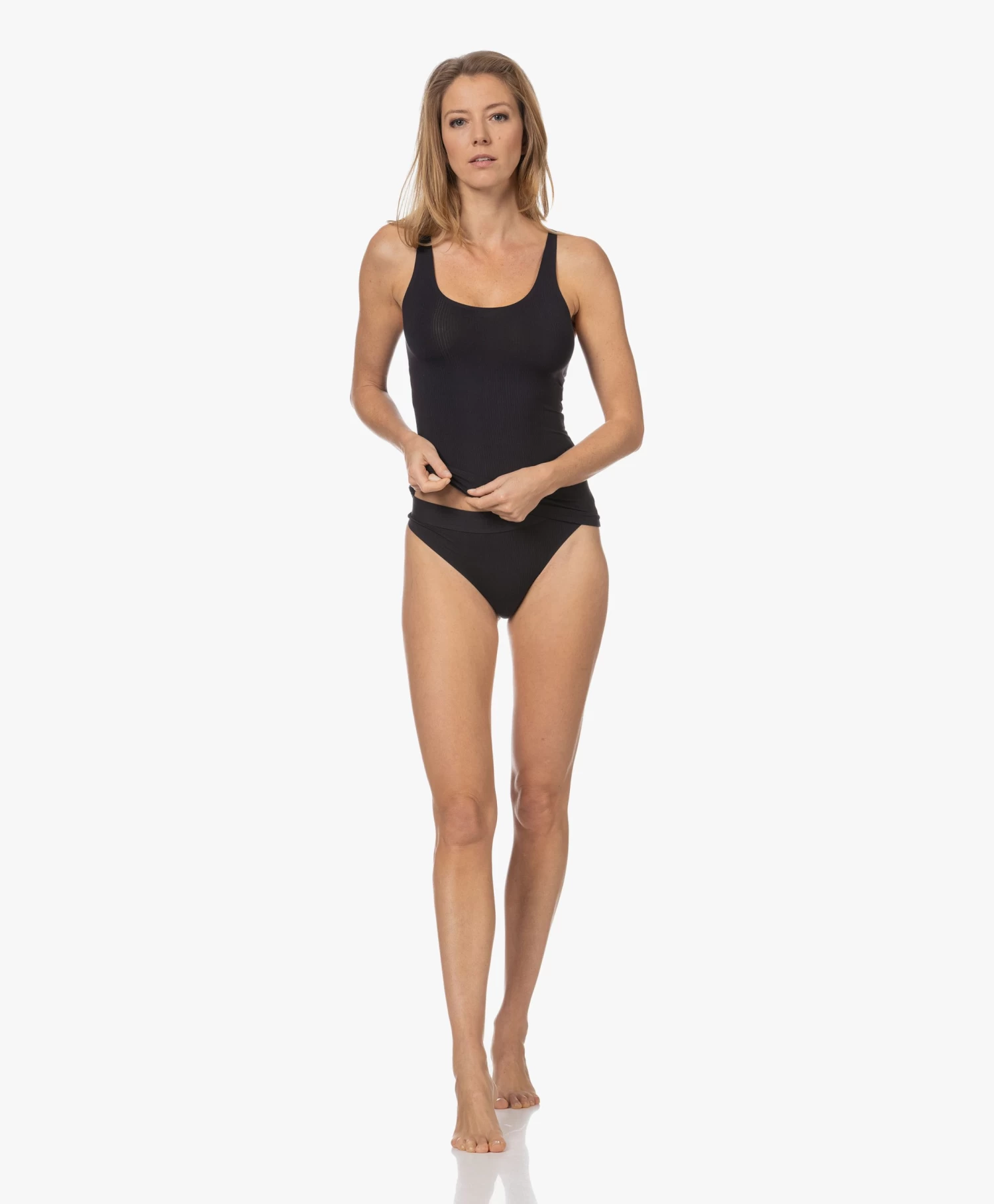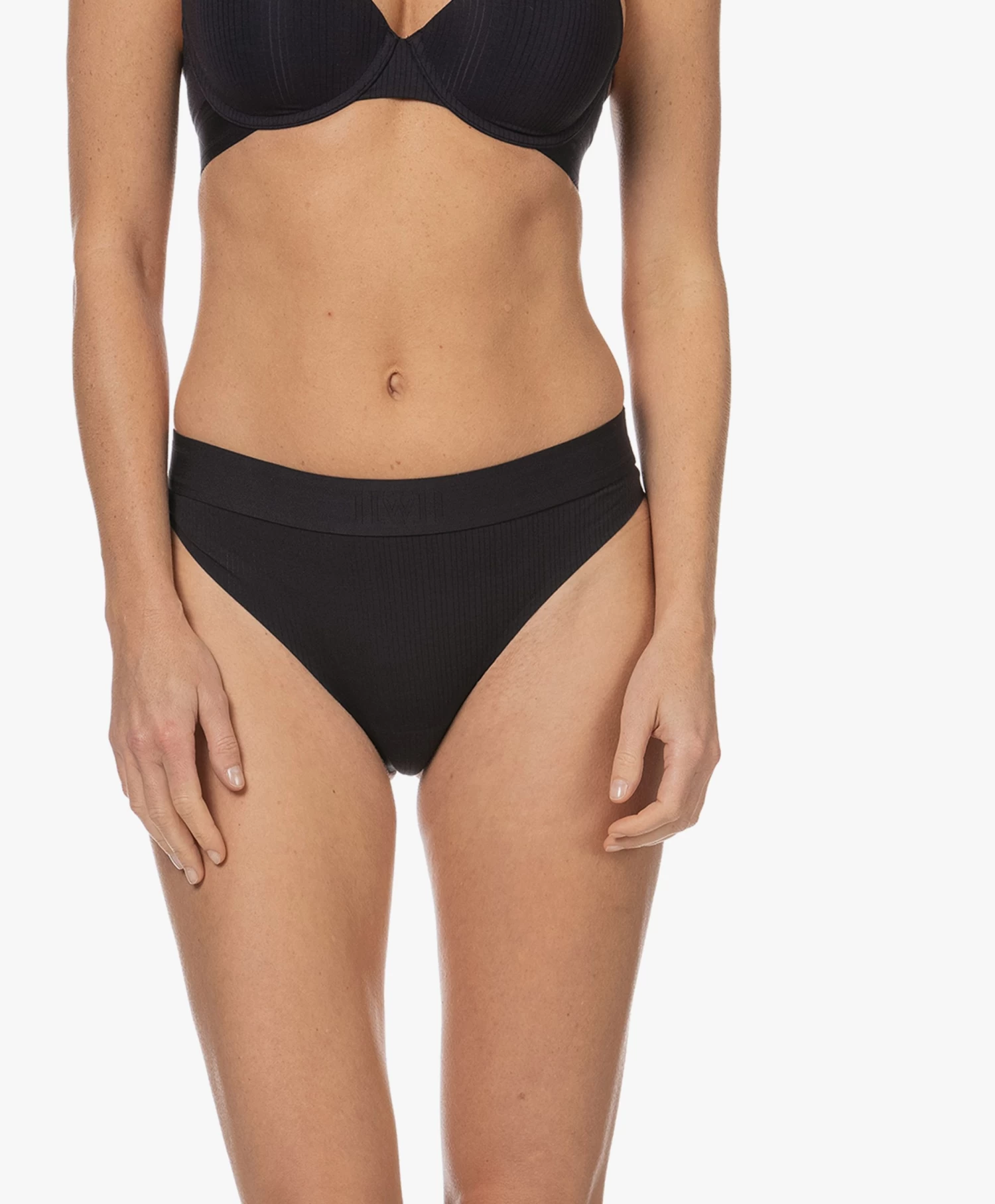 Wolford zet hun innovatieve rib-jersey in voor deze zwarte string en dat betekent: ultiem comfort, optimaal ademend vermogen én een gladde basis onder kledingstukken. De soepele stof – die verrassend genoeg grotendeels uit katoen bestaat – voelt glad en bovenal ultra-zacht aan op de huid en heeft een naadloze, bonded afwerking. Een brede elastieken tailleband met ingeweven logo verhoogt het comfortgehalte nog eens extra.