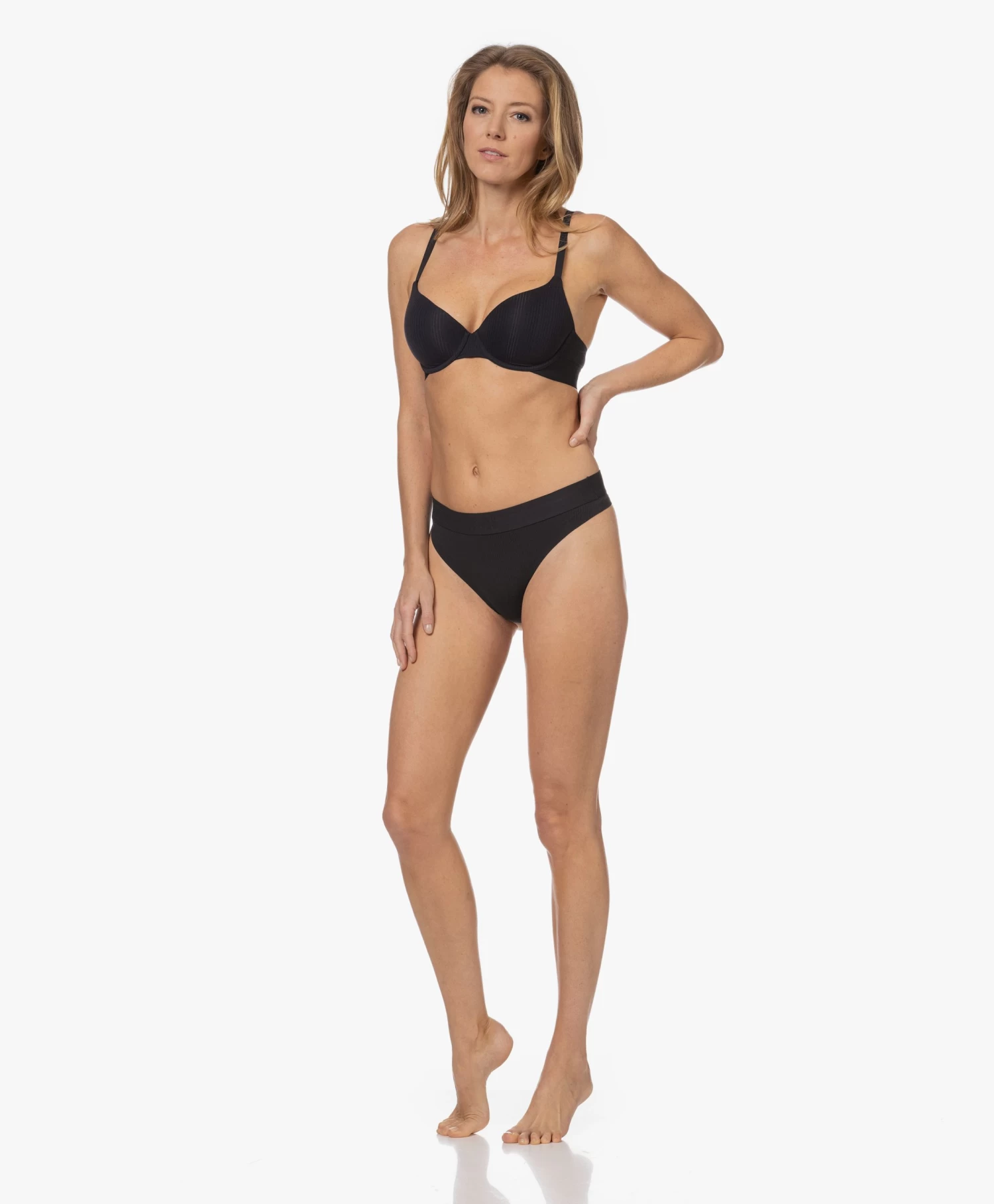 Het gevoel van loungewear gecombineerd met de ondersteuning van een klassieke beugel-BH – Wolford heeft zichzelf weer overtroffen. Deze zwarte BH met licht voorgevormde demi cups is onderdeel van de Beauty Cotton collectie die zich kenmerkt door een innovatie rib jersey die verrassend zacht en soepel aanvoelt. De extra-brede zijvleugels werken flatterend en de elastieken band met branding zorgt voor nóg meer draagcomfort.
