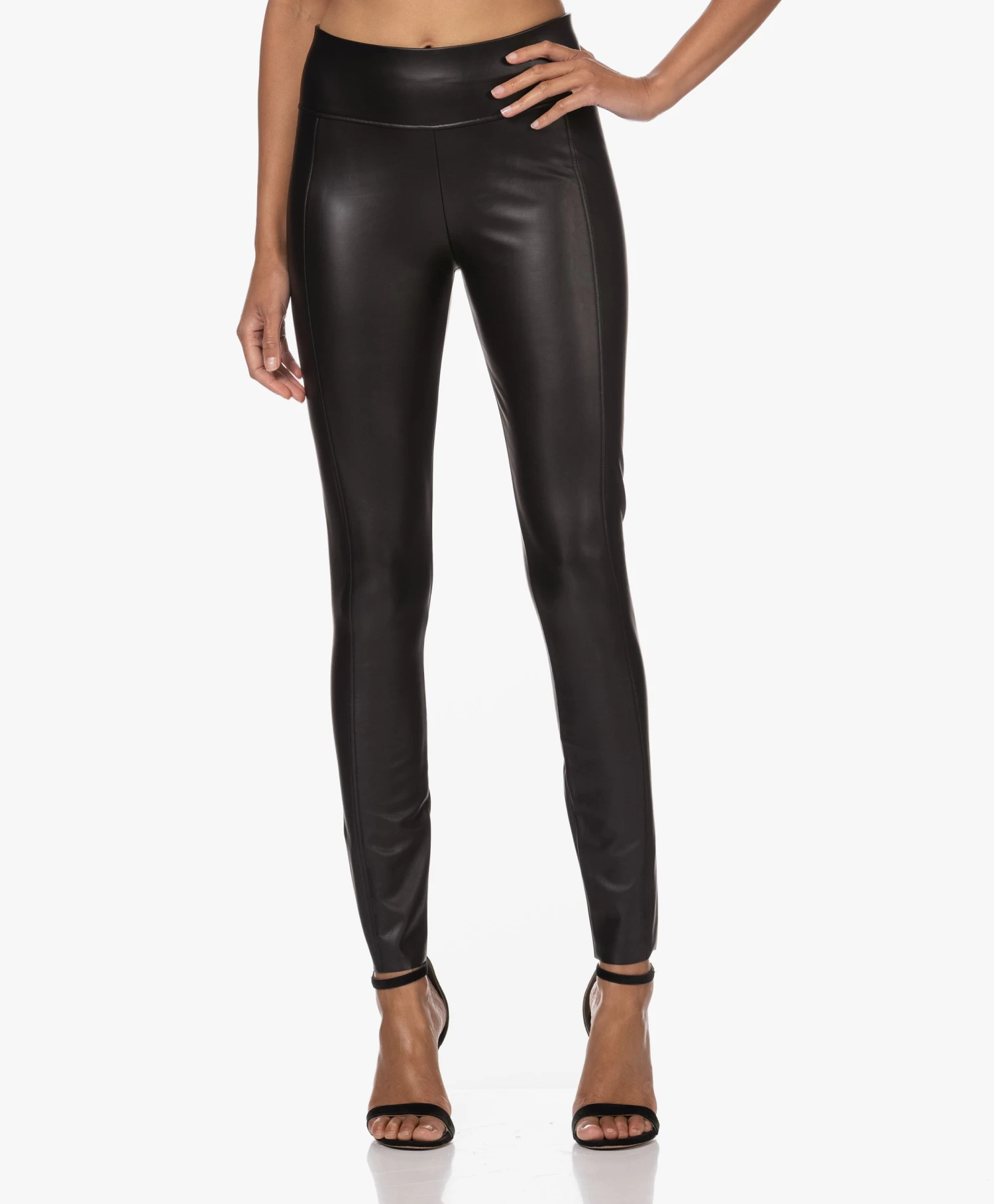 Een niet van echt te onderscheiden, vegan alternatief voor een leren legging met zóveel bijkomende voordelen kan alleen van Wolford komen. Deze zwarte Edie legging is gemaakt van een soepele faux leren stretch-kwaliteit met licht shaping effect, kan naar wens korter gemaakt worden dankzij de ‘Free Cut’ optie én mag bovendien gewoon in de wasmachine – we zeiden toch dat er veel voordelen waren?