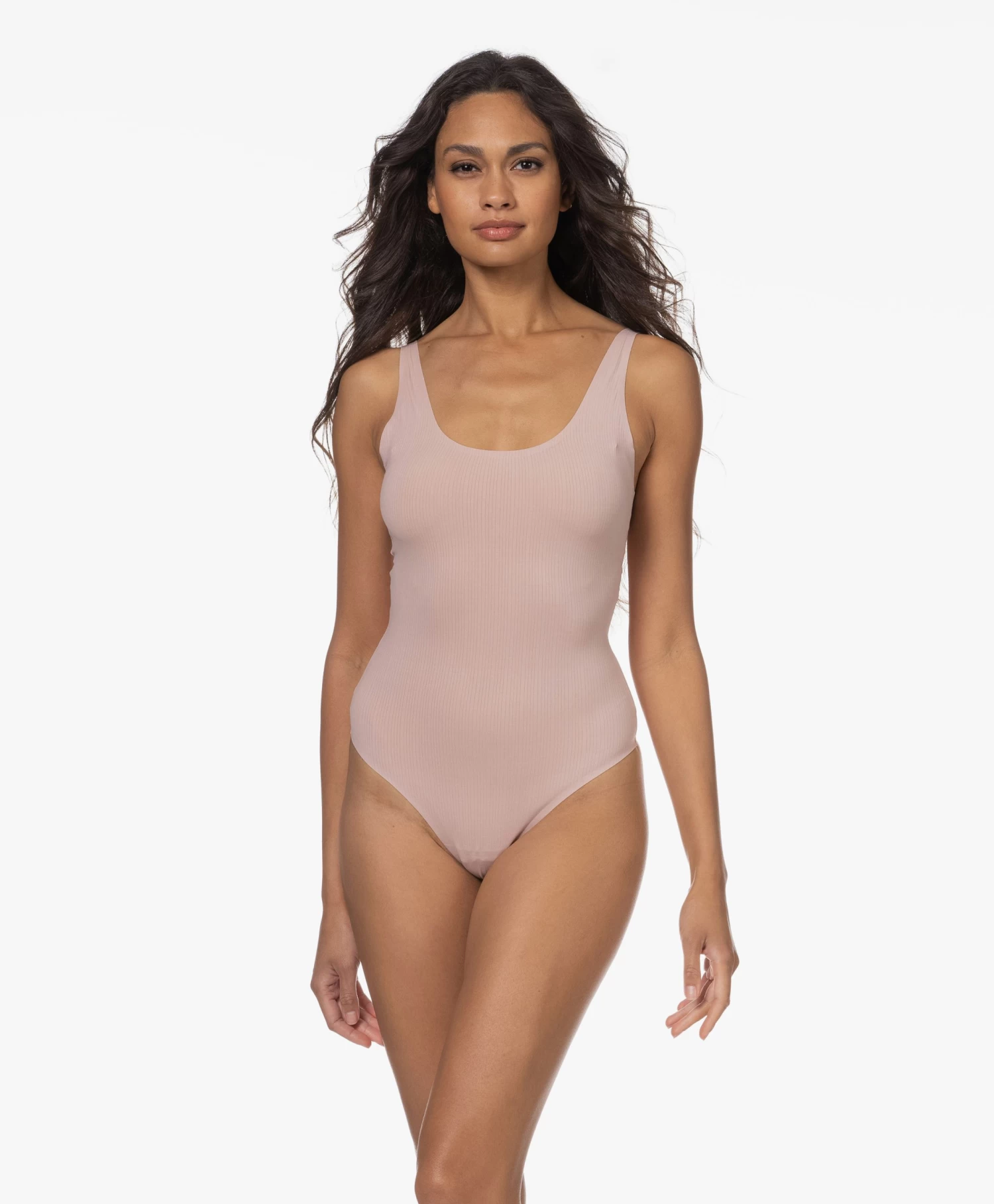 Een ultra-subtiel ribpatroon creëert een verfijnde uitstraling in deze stringbody van Wolford. De poederroze body is vervaardigd van lichtgewicht katoenmix jersey en voorzien van een luxe bonded afwerking, verstelbare schouderbandjes en een eenvoudig-te-hanteren drukknoopsluiting. De kleur is tijdloos en veelzijdig.