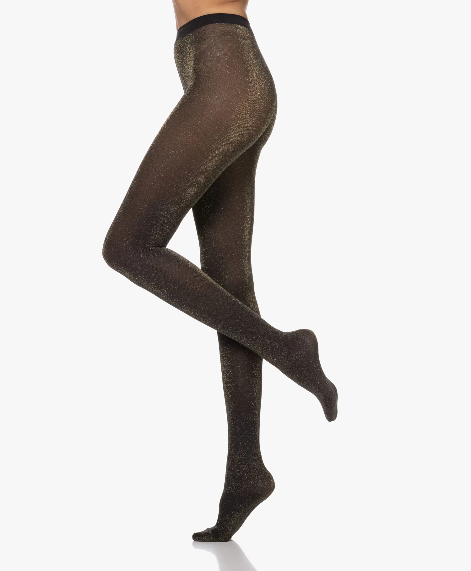 Met deze glamoureuze 60 dernier panty van Wolford ben je klaar voor een feestje of geef je je dagelijkse outfit net dat beetje extra. Gemaakt van een ultra-comfortabele stretchy materialenmix en verrijkt met goudkleurig lurex garen, is deze panty niet alleen een genot voor de huid, maar ook voor het oog. Het ingeweven lurex draad maakt dit een niet alledaags accessoire met sterallures.