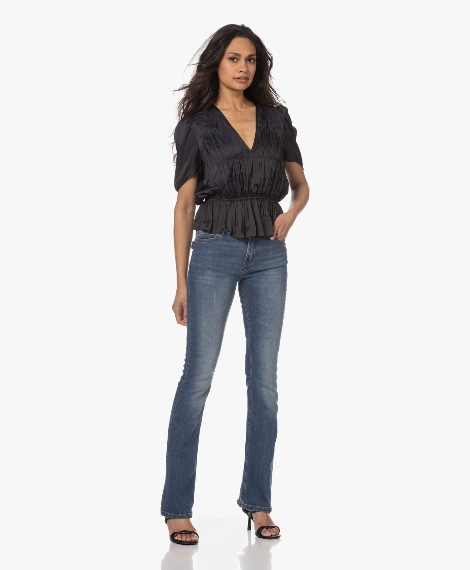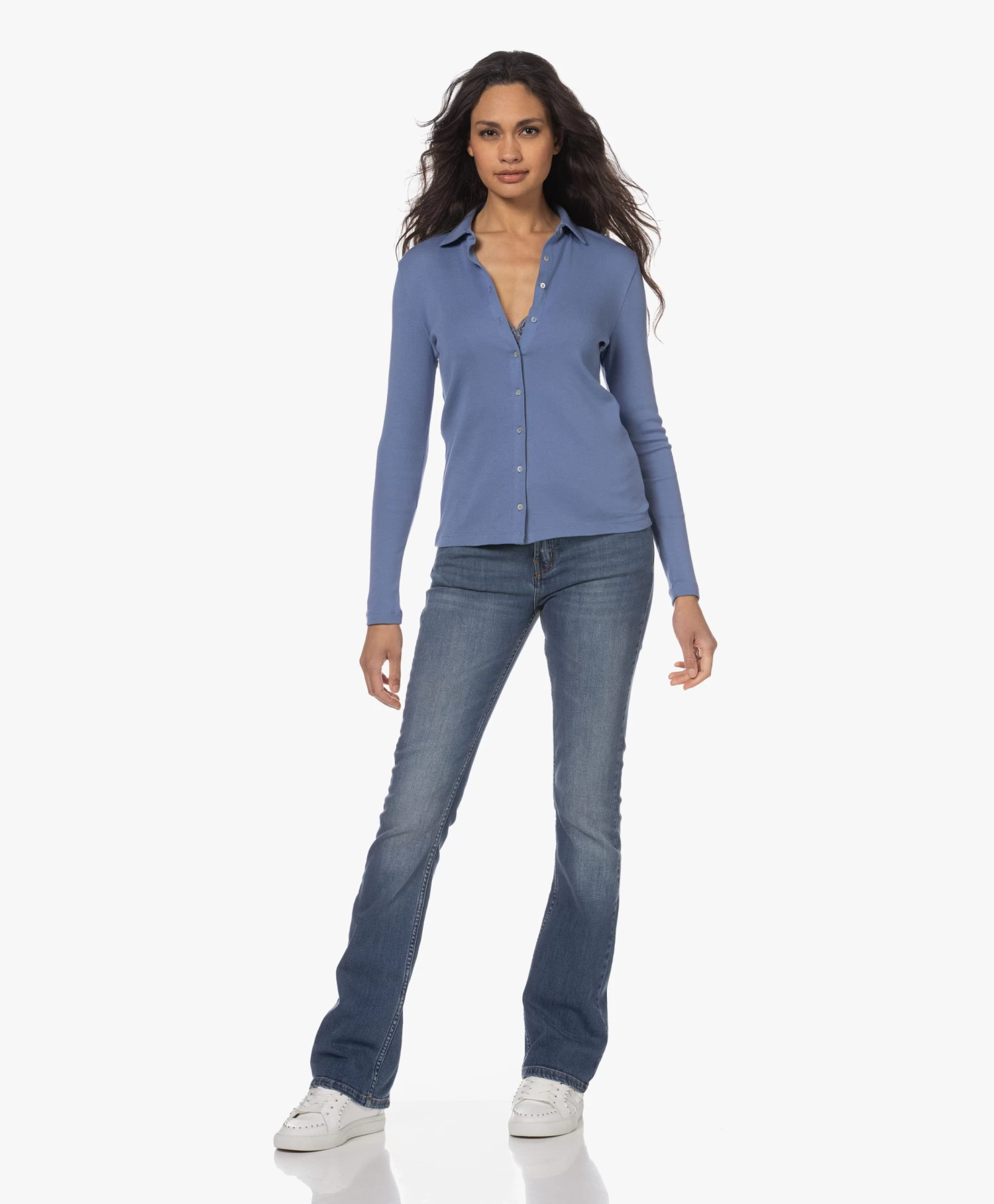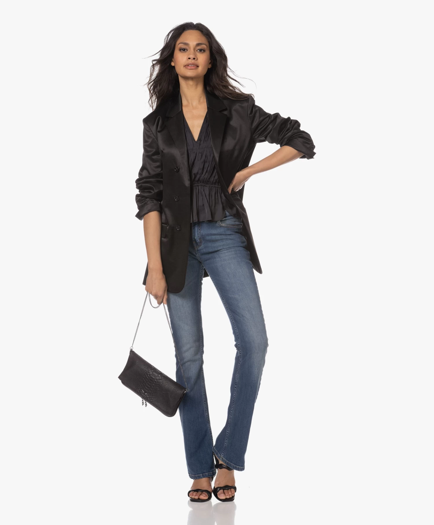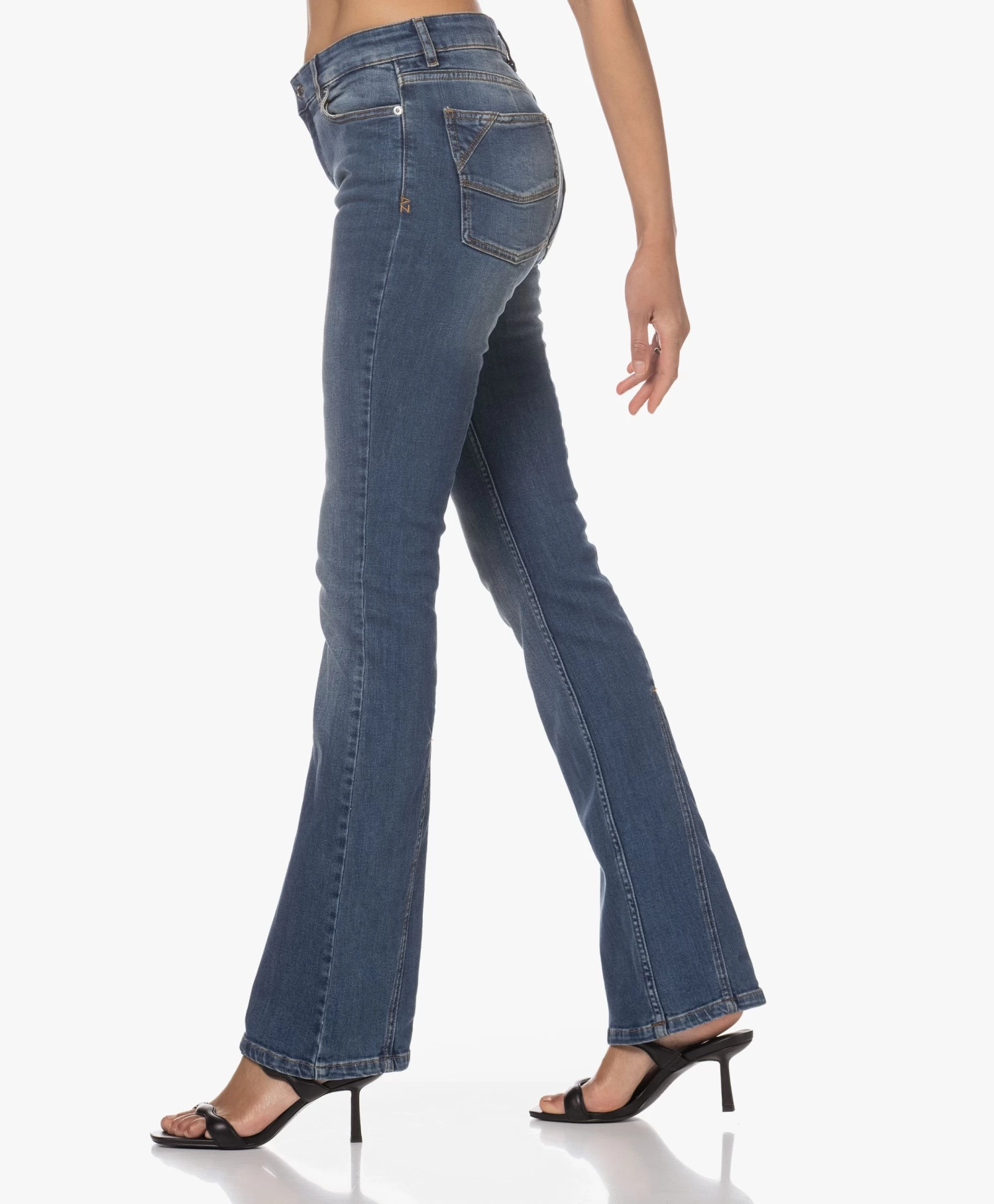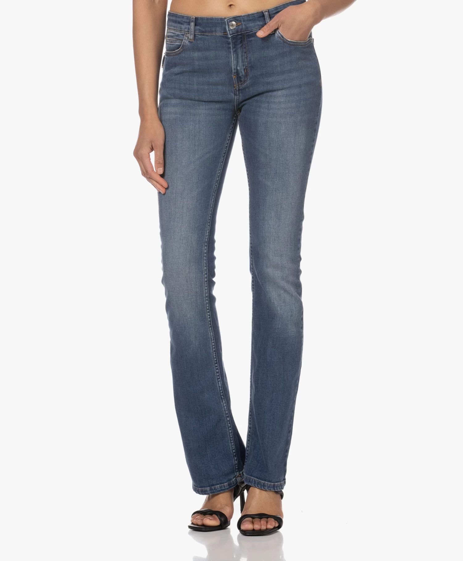 Blauwe denim is een tijdloze publieksfavoriet die je het liefst in alle soorten en maten in de kast wilt hebben. Zadig & Voltaire’s Eclipse Eco Denim jeans heeft een flared silhouet waarbij vooral de achterkant een grote rol speelt: de deelnaden aan de achterkant wekken de suggestie van een split. Gemaakt van biologisch katoen, verrijkt met precies genoeg stretch voor een onberispelijke pasvorm en veel bewegingsvrijheid.