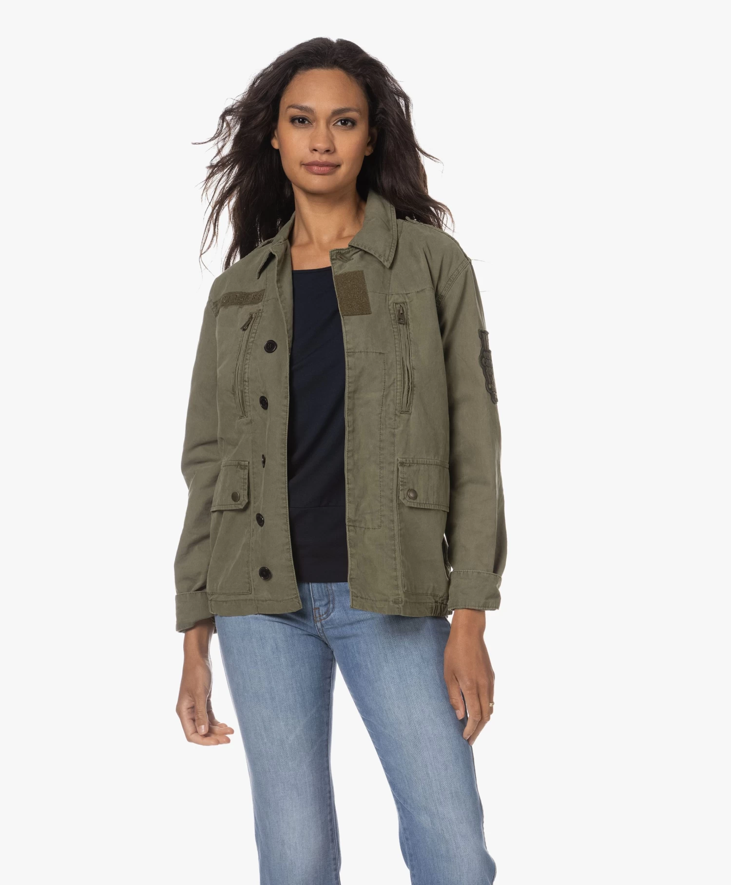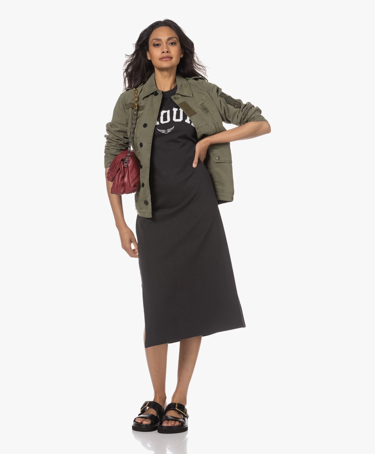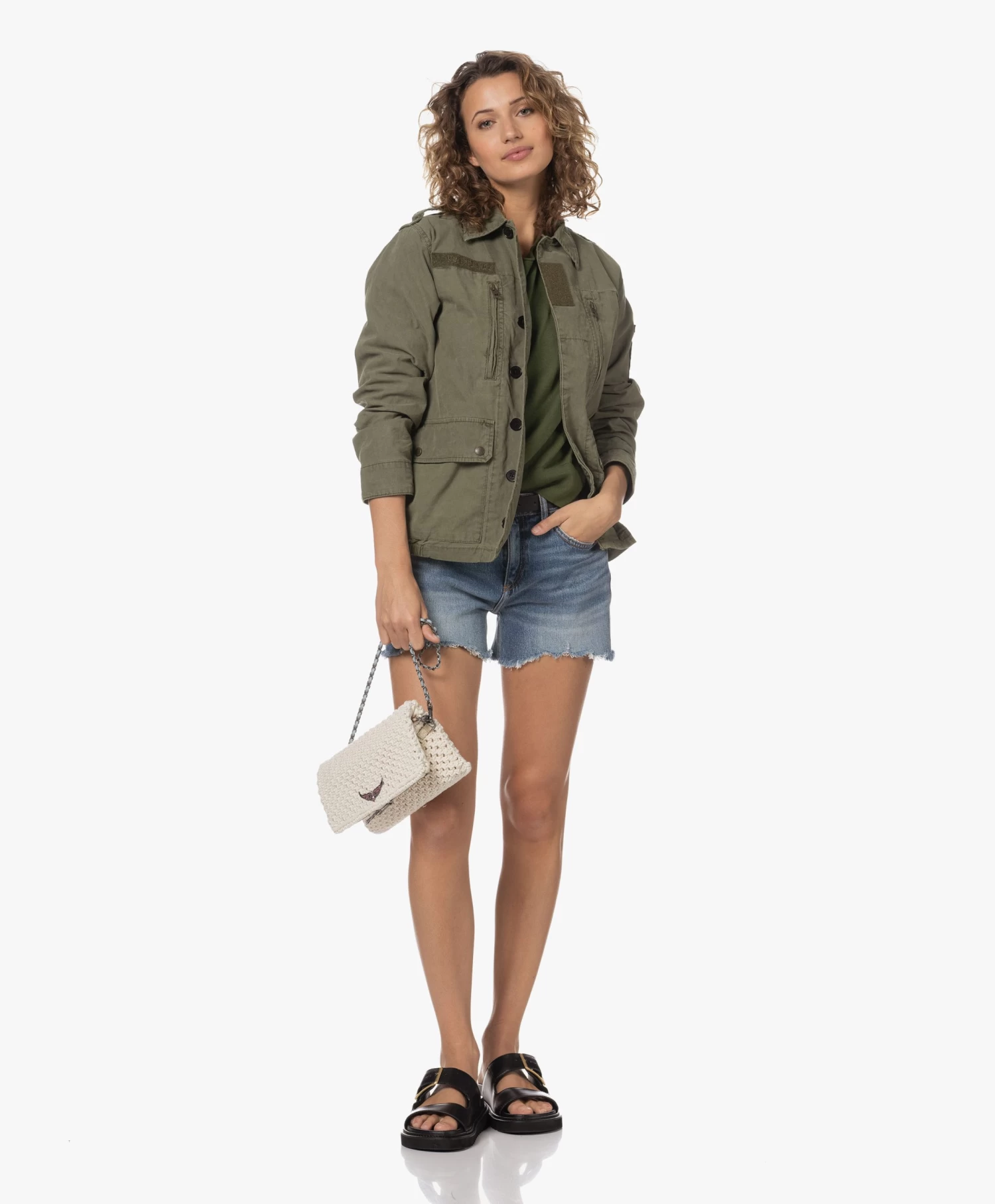 Als er één merk een stoer kakigroen jack een vrouwelijke twist kan geven, dan is het Zadig & Voltaire. Het vleugje glitter in de velcro logopatch maakt het gewassen jack met grove ritsen en stoere klepzakken speelser. Met de geborduurde ‘women can do anything’ patch op de mouw straal je zelfverzekerdheid uit. Style je look iconisch door er cargo pants in een vergelijkbare legergroene tint bij te dragen.