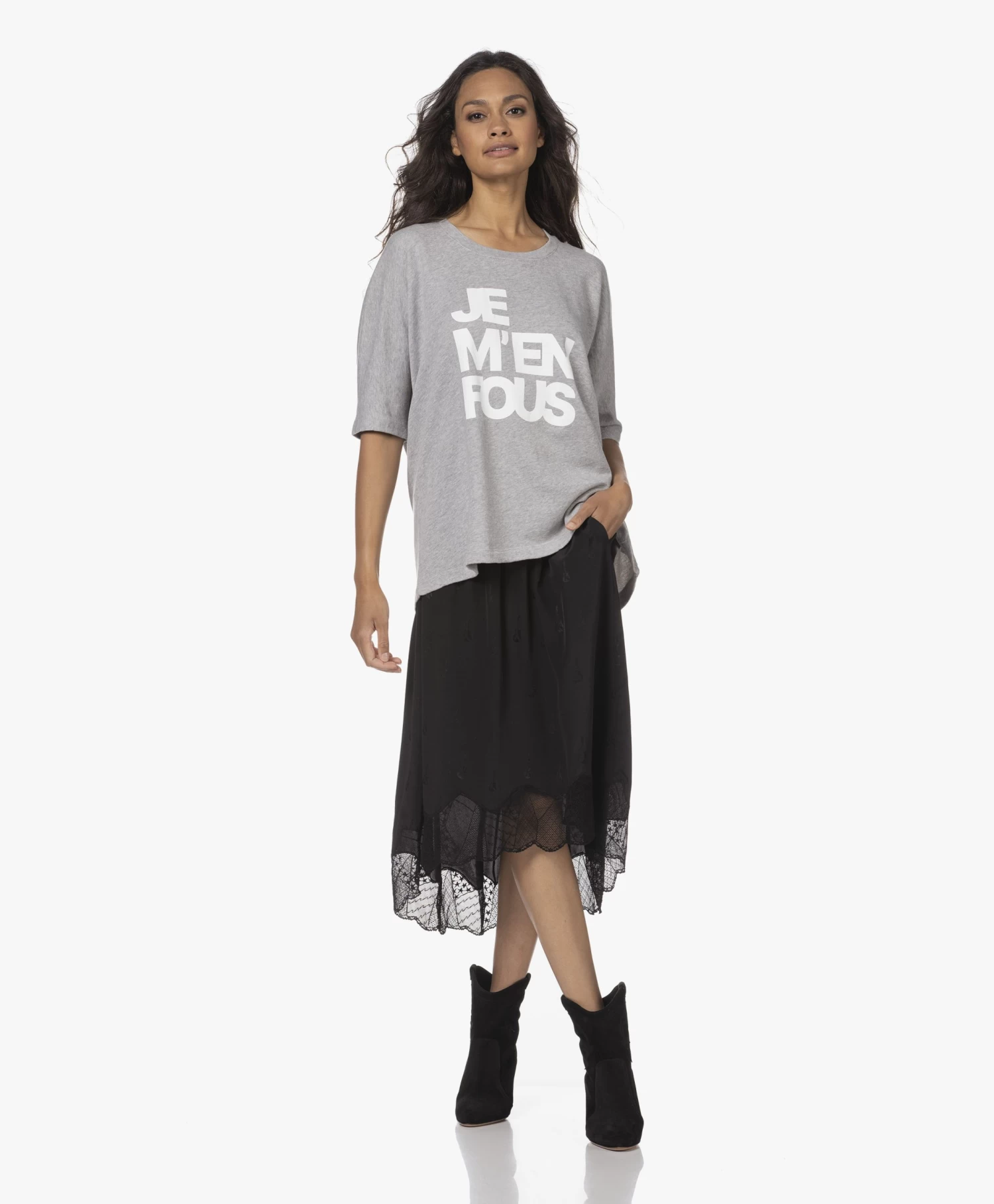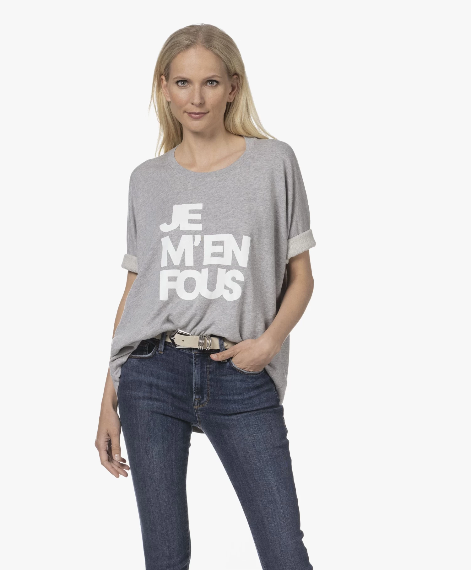 Zo zacht alsof het al jaren in je kast hangt, maar toch echt gloednieuw: Zadig & Voltaire’s lichtgrijze Portland ‘je m’en fous’ sweatshirt is gemêleerd voor een casual look & feel. Gemaakt van niet te zware French terry van katoen met modal, voorzien van een witte ‘je m’en fous’ print op de borst en een semi-oversized fit.